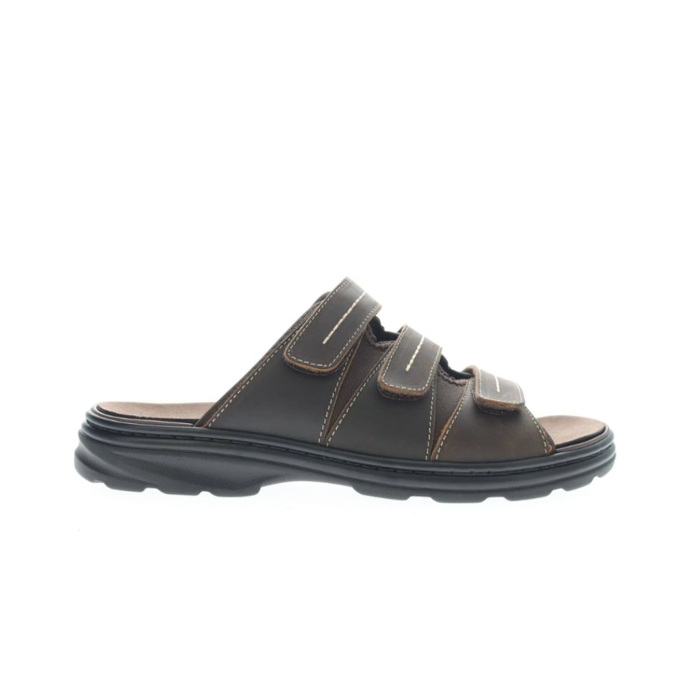 vendredi fou2Homme souriant tenant plusieurs paires de chaussures.