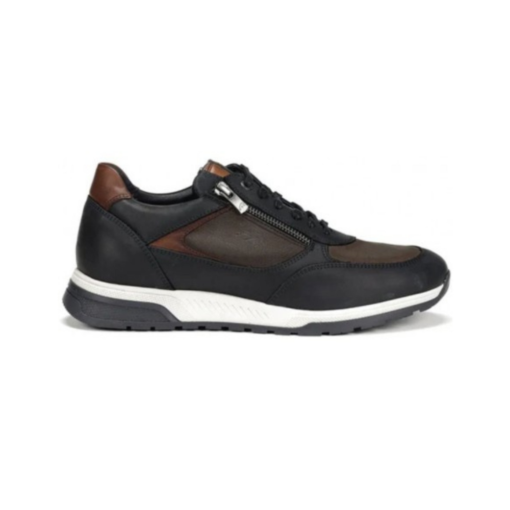 vendredi fou2Homme souriant tenant plusieurs paires de chaussures.