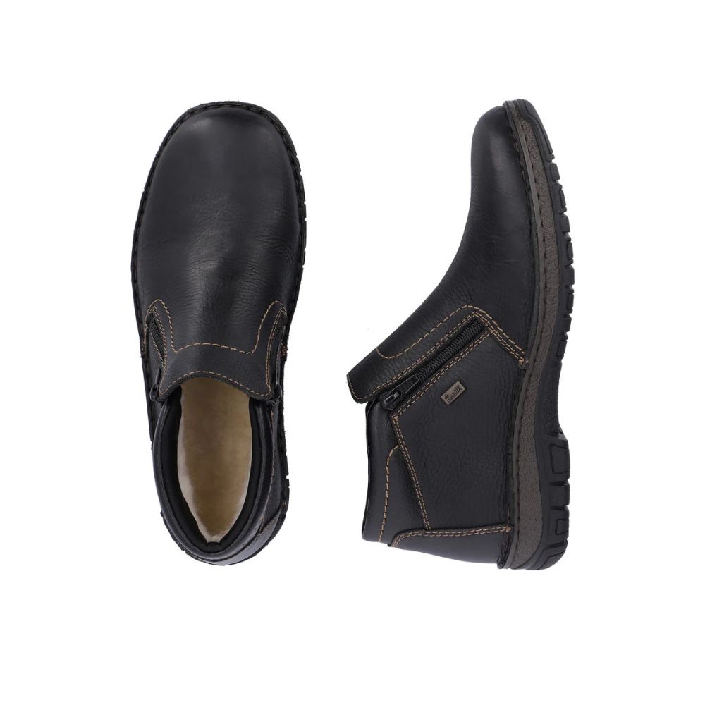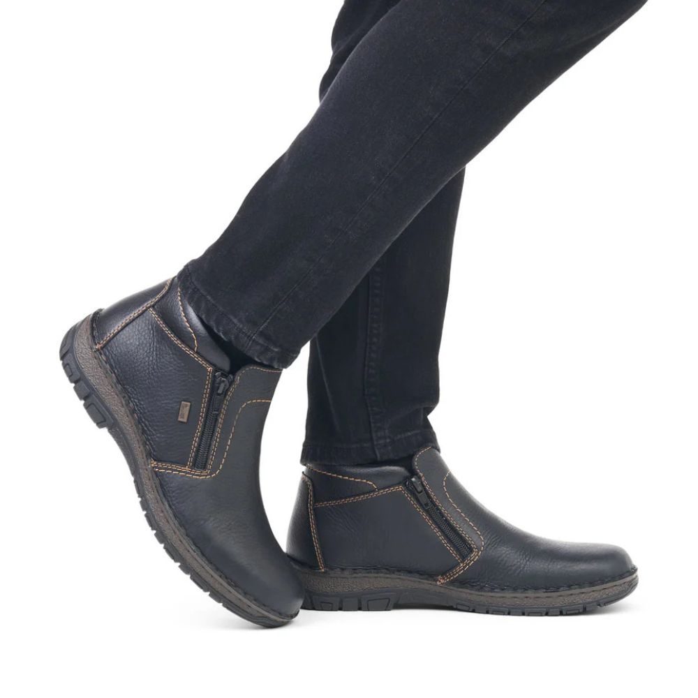 Plus de liberté de mouvement pour vos pieds ! Ces bottines Rieker noires en cuir lisse sont idéales en toute occasion. Leur conception cousue les rend particulièrement robustes et flexibles. Une fermeture éclair permet un enfilage rapide et facile. Les coutures marron contrastantes apportent une touche tendance. La semelle, à la fois légère et amortissante, offre un double bien-être à chaque pas. La semelle de recouvrement est également ultra-souple. Sa largeur supplémentaire offre une plus grande liberté de mouvement aux orteils. La doublure en laine vierge douillette et très chaude et la technologie RiekerTEX éprouvée font de ces chaussures le compagnon idéal, où et quand ! Ici, le froid s'en va sans souci.