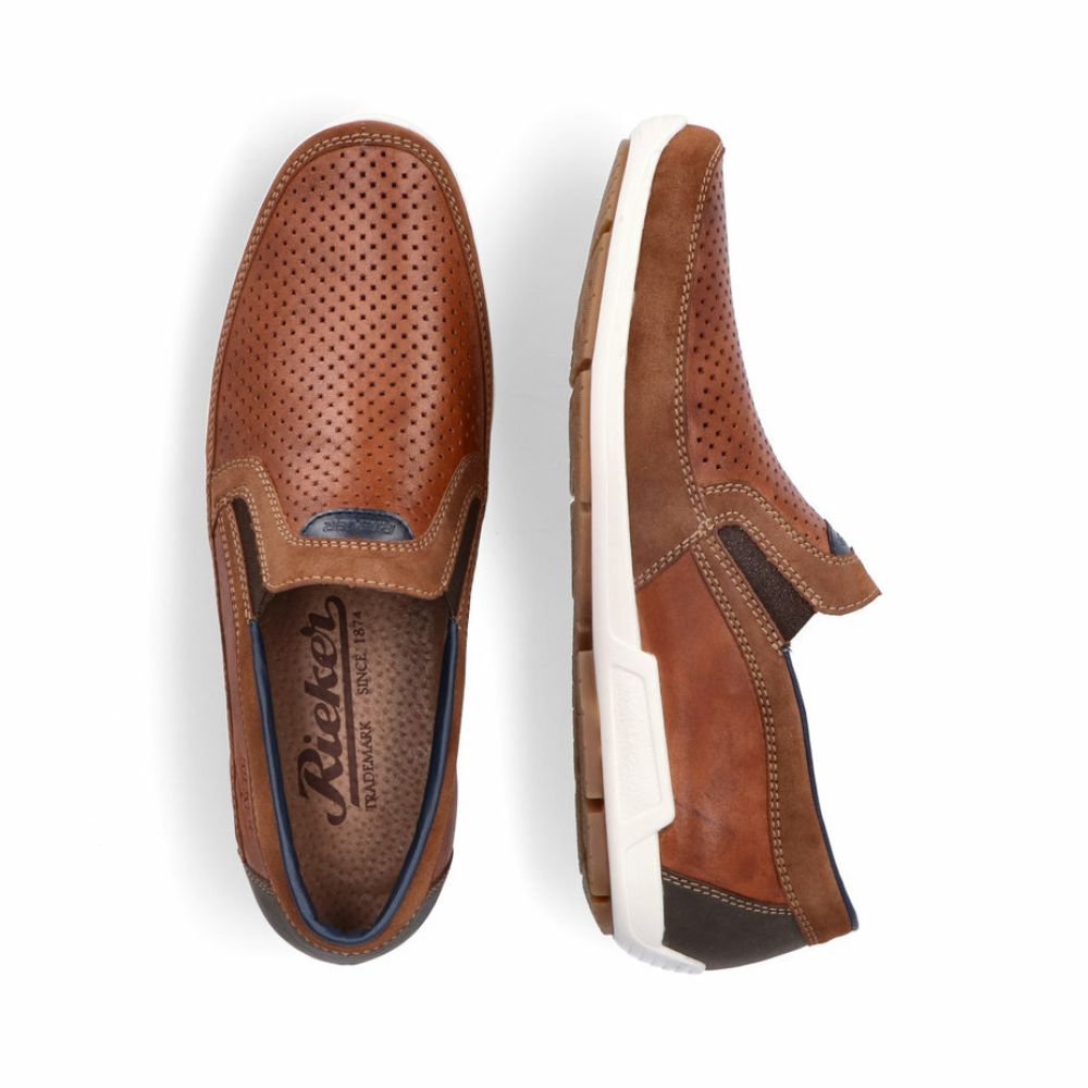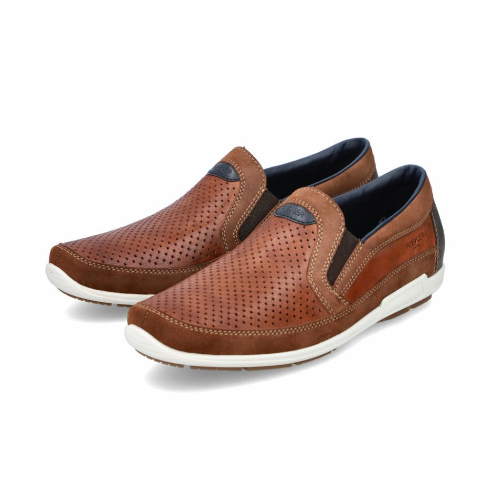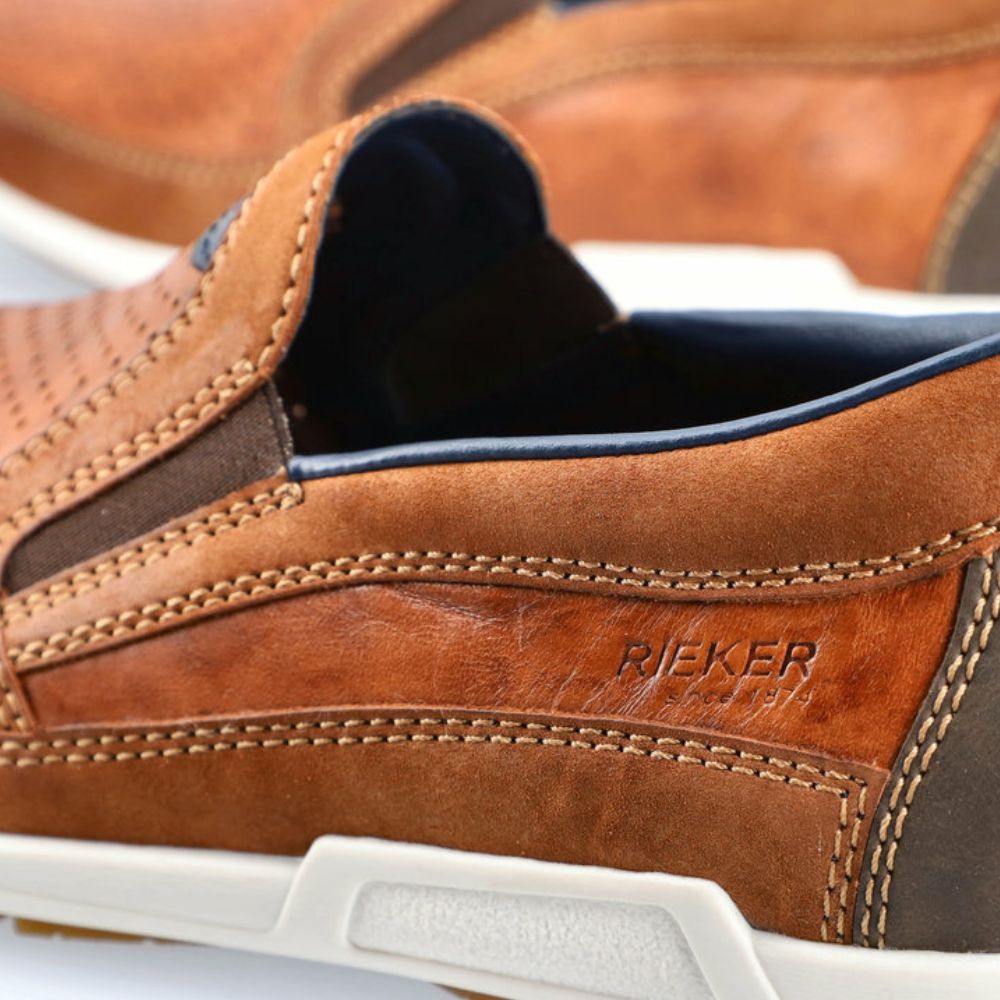 Mocassins en cuir pour homme de la collection Rieker. Élégants et originaux, ils vous assurent un style unique. Leur coupe spacieuse, dotée d'élastiques intégrés, facilite l'enfilage et le retrait. La semelle design garantit un confort optimal à chaque pas. Idéaux pour ceux qui recherchent confort et style, ces mocassins vous accompagneront aussi bien au travail qu'au quotidien. Si vous passez beaucoup de temps debout, la marque Rieker est faite pour vous. Leur conception confortable et légère, associée à une semelle intérieure en cuir souple et à une semelle extérieure flexible, assure une marche agréable. Issus de la collection Antistress, ces mocassins bénéficient du système Antistress et d'une semelle légère et flexible pour un confort optimal à chaque pas.