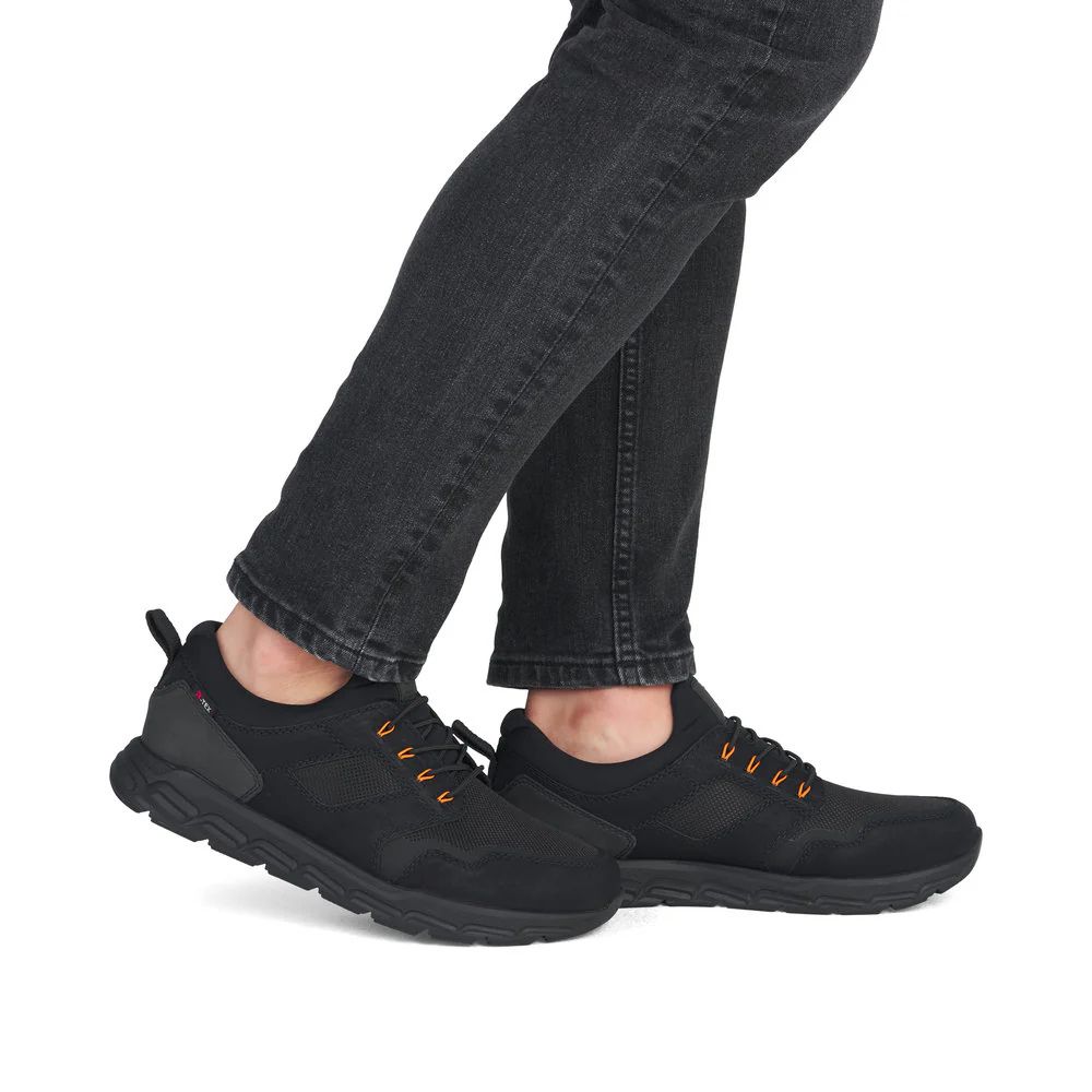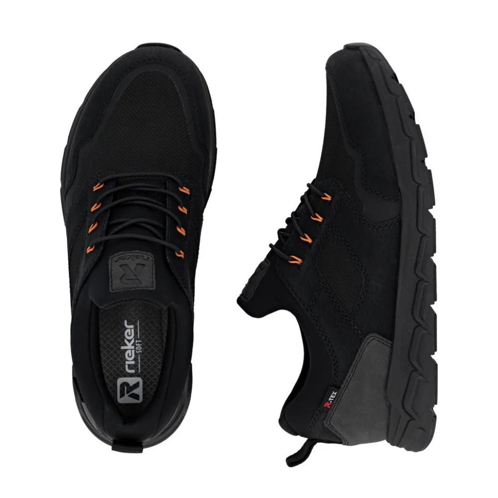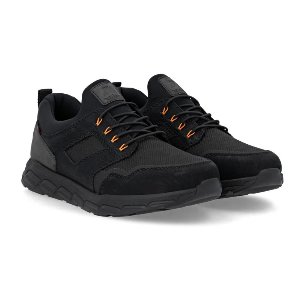 Baskets basses Rieker noires en cuir synthétique de qualité. Marchez protégé grâce à la membrane RiekerTEX imperméable et respirante. Le revêtement HighTech Nano offre un effet déperlant et anti-salissures. Fermeture ultra-rapide et facile grâce à la bande élastique. Déroulement dynamique du talon aux orteils grâce à la semelle intérieure rembourrée et amovible MemoCup. Doublure Drysport légère et respirante.