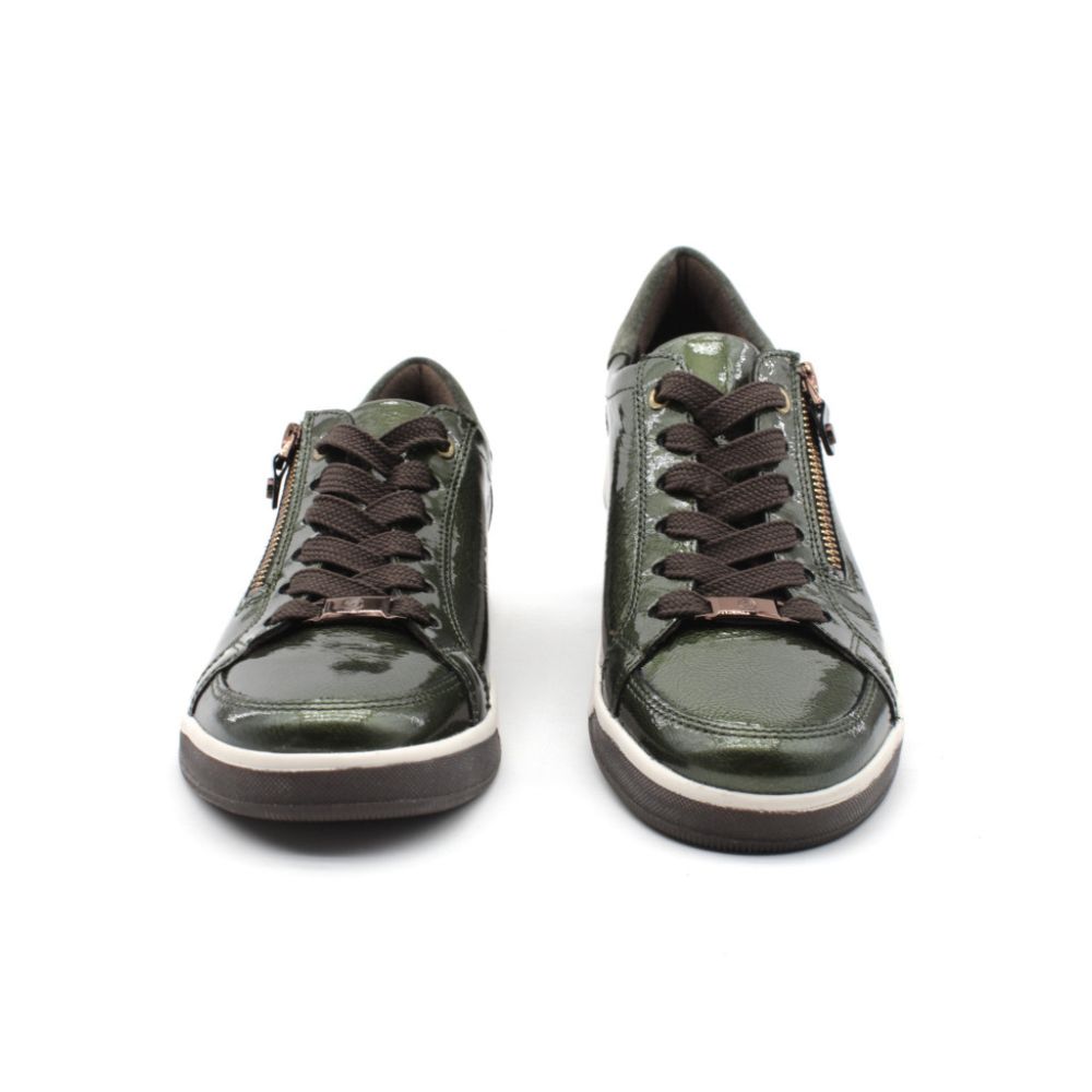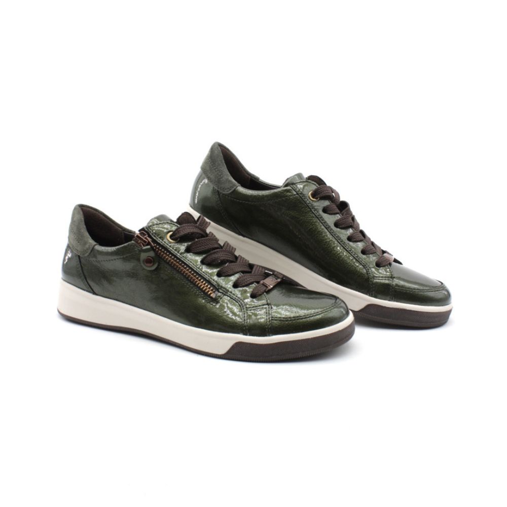 Ces sneakers Ara 12-34432-95 en cuir vernis vert rehaussent toutes vos tenues ! Confectionnées avec un cuir souple, ces chaussures sont à la fois sportives et élégantes. Grâce à leur semelle intérieure respirante à base de fibres de bambou, ces chaussures sont agréables à porter même pour de longues journées.