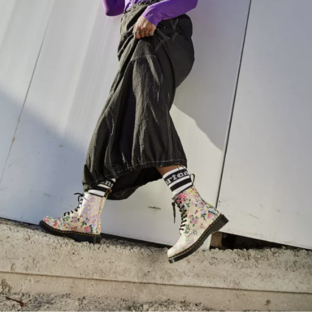Les archives de Dr. Martens ont inspiré notre dernier imprimé floral. La botte 1460 à 8 œillets est revisitée pour cet été avec un design sérigraphié rehaussé de touches de couleurs pastel inspirées de notre palette de saison. La botte Floral Mash Up est confectionnée en cuir Backhand résistant et souple. Elle est rehaussée d'œillets dorés vieillis et contraste avec les lacets et le col noirs. Elle repose sur notre semelle DMS classique et arbore notre incontournable surpiqûre jaune et une boucle de talon AirWair.
