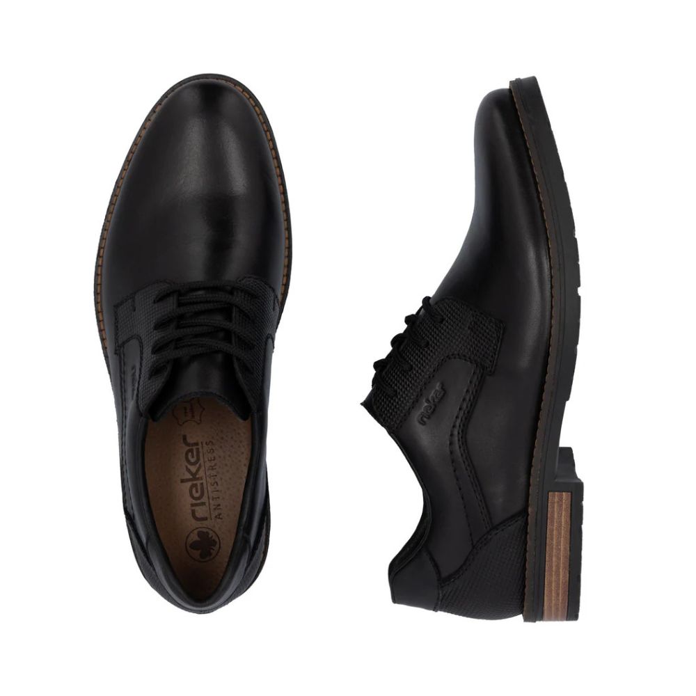 Quand style et fonctionnalité se rencontrent. Ces chaussures Rieker noires décontractées à lacets, en cuir lisse, vous accompagneront partout avec confort. Le laçage permet un ajustement précis. La semelle adhérente assure une marche stable et la semelle extérieure extra-souple garantit un confort optimal. La largeur confort offre plus d'espace au pied. Bien-être garanti !