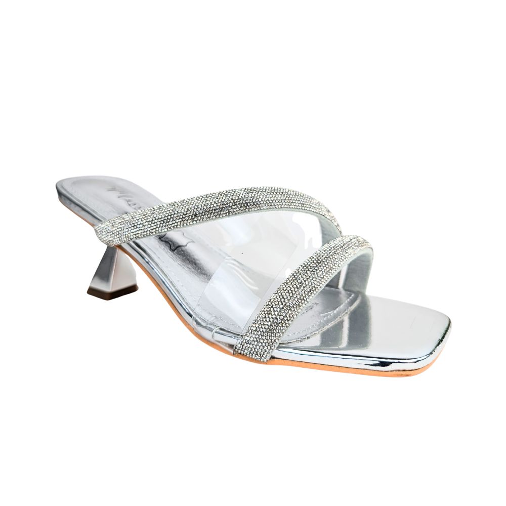 Orné de strass scintillants délicatement répartis, il capte la lumière à chaque mouvement, ajoutant une note de brillance et de féminité. La finition argentée renforce son allure luxueuse, idéale pour les occasions spéciales ou les soirées élégantes.