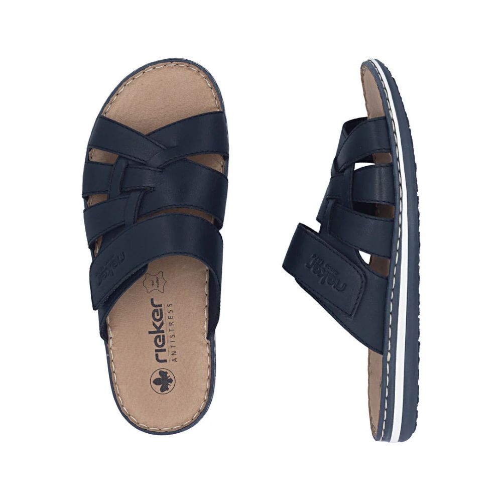 Prêtes pour l'été ! Ces mules Rieker bleu foncé en cuir lisse allient les dernières tendances mode au confort légendaire de Rieker. Leur construction cousue leur confère robustesse et une semelle particulièrement souple. Grâce à leur fermeture auto-agrippante, elles s'enfilent en un clin d'œil. La semelle légère et amortissante amortit chaque pas. La largeur confort offre un bien-être optimal et plus d'espace à l'intérieur de la chaussure. Tout ce dont vous avez besoin dans une seule chaussure !