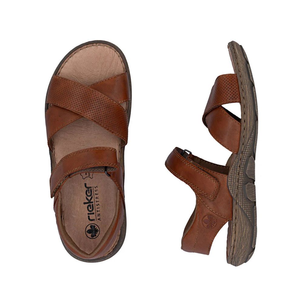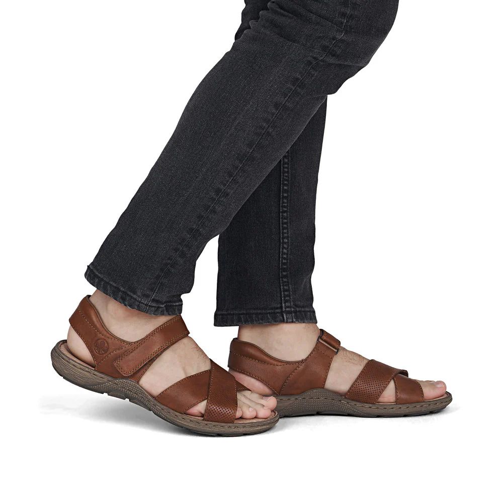 Confort et luxe à l'état pur ! Ces sandales Rieker en cuir lisse allient style classique et confort optimal tout au long de la journée. Grâce à leur construction cousue, elles sont particulièrement résistantes et souples. Une fermeture auto-agrippante permet de les enfiler facilement et rapidement. La semelle légère et amortissante offre un confort durable, même lors des longues journées. La largeur confort offre plus d'espace au pied. Un pas vers un été radieux.