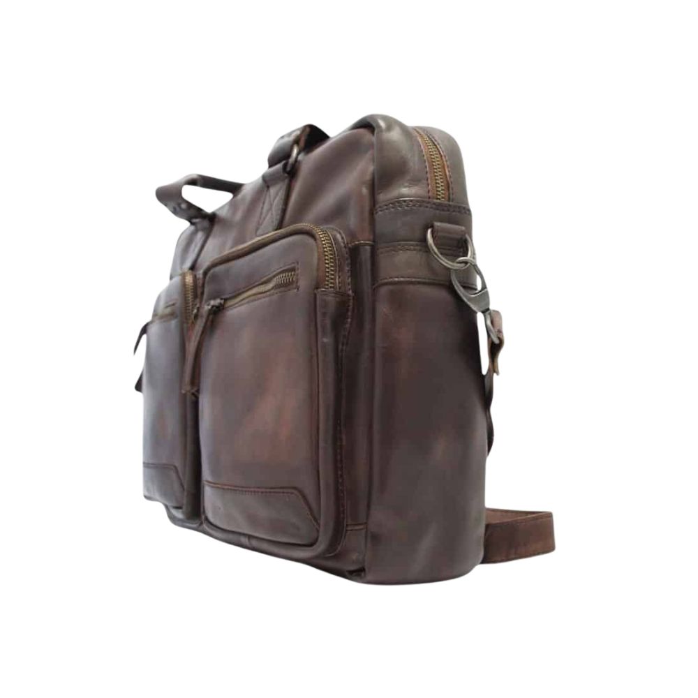 Porte-documents en cuir italien de marque The Trend. Pour une efficacité d’organisation, le porte-documents est muni de compartiments secondaires pour le rangement d’articles de bureau divers. Dans le compartiment principal, vous disposerez également d’une section pour y ranger sécuritairement un ordinateur portable. L’extérieur du porte-documents contient de l’espace de rangement supplémentaire grâce à des pochettes avant et une à l’arrière. Pour le transport du porte-documents, ce dernier possède des poignées et une bandoulière ajustable/amovible.