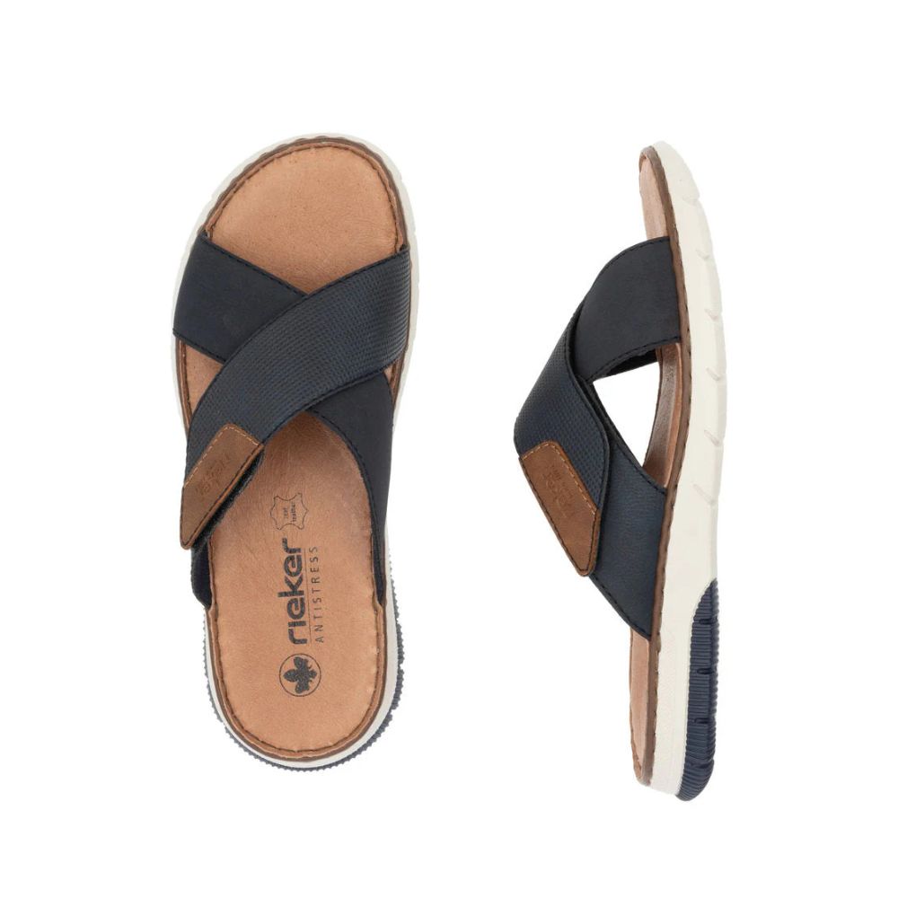 Style et confort : indissociables ! Avec ces mules Rieker bleues, vous profiterez encore plus du beau temps ! Leur construction traditionnelle à coutures apparentes rend la chaussure particulièrement souple et robuste, et assure un ajustement parfait. Grâce à une fermeture auto-agrippante, ces mules s'enfilent en un clin d'œil. La semelle amortissante et très légère amortit chaque pas. De plus, la semelle de recouvrement extra-souple offre un confort optimal. Ce modèle est coupé en largeur confort G 1/2, offrant un espace suffisant pour le pied. Que demander de plus !