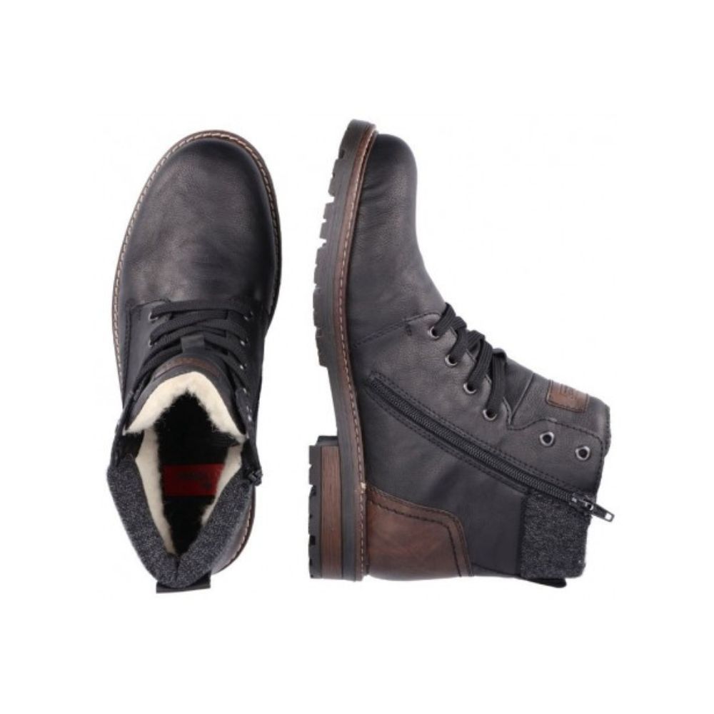 Un vrai bonheur ! Vous ne voudrez plus quitter ces bottines noires à lacets Rieker. L'association astucieuse du laçage et de la fermeture éclair offre un maintien optimal et facilite l'enfilage et le retrait. Le logo en relief sur le côté rafraîchit le design. La semelle adhérente assure une bonne adhérence en toutes circonstances. De plus, la semelle de recouvrement est extra-douce. La largeur confortable offre un confort optimal, offrant plus d'espace dans la chaussure. La doublure en laine vierge douillette et très chaude et la technologie RiekerTEX éprouvée font de ces chaussures le compagnon idéal, où que vous soyez ! Le bien-être tendance signé Rieker !