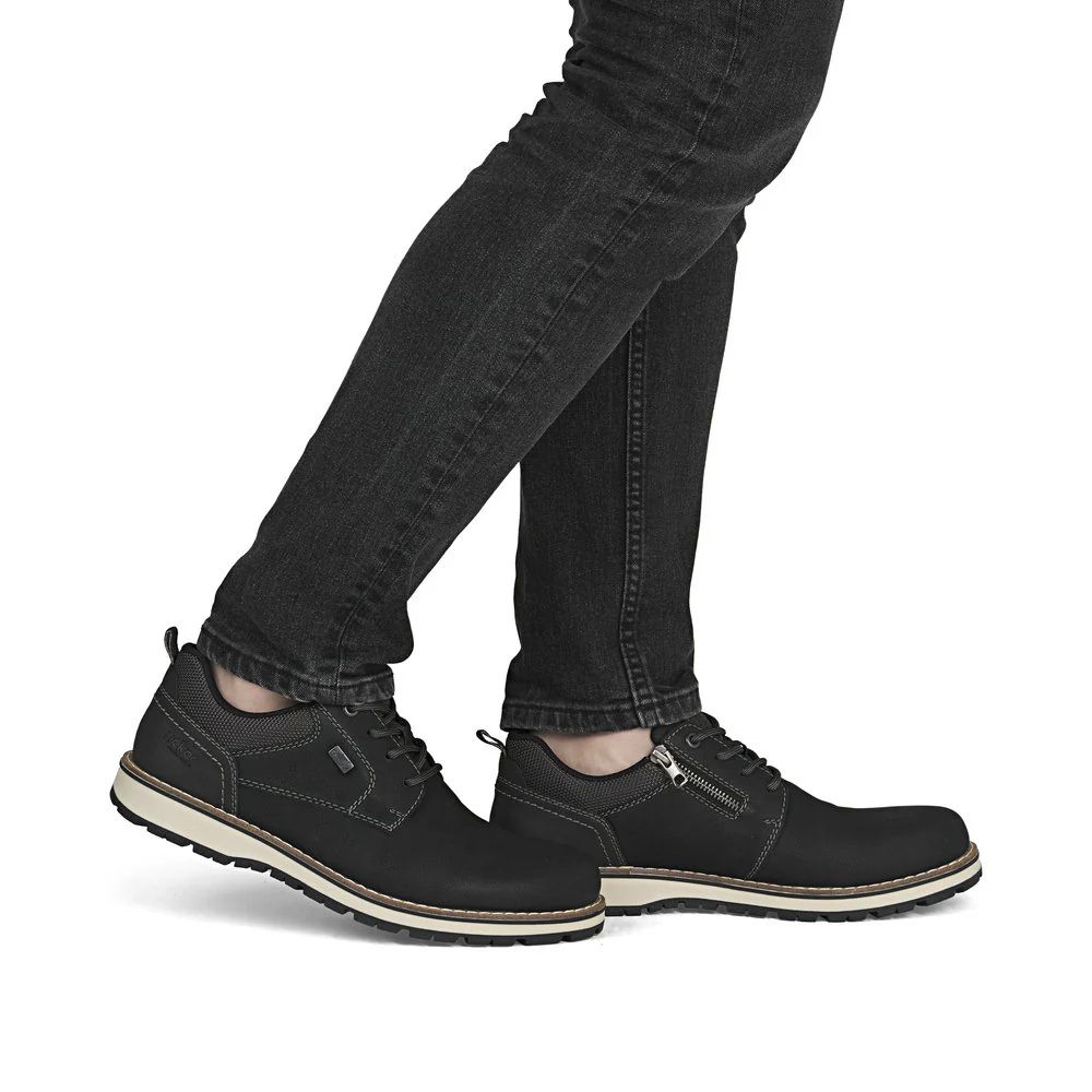 Polyvalentes ! Vous ne voudrez plus quitter ces chaussures noires à lacets Rieker. Grâce à leur système astucieux de laçage et de fermeture éclair, elles sont faciles à enfiler et à retirer. Leur semelle adhérente offre une excellente traction sur tous types de terrains, et leur semelle extérieure ultra-douce est un atout supplémentaire. La largeur confortable offre plus d'espace au pied. Le matériau déperlant de la tige assure une protection optimale contre l'humidité. Que demander de plus ?