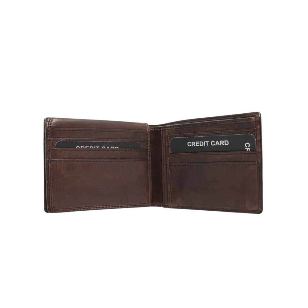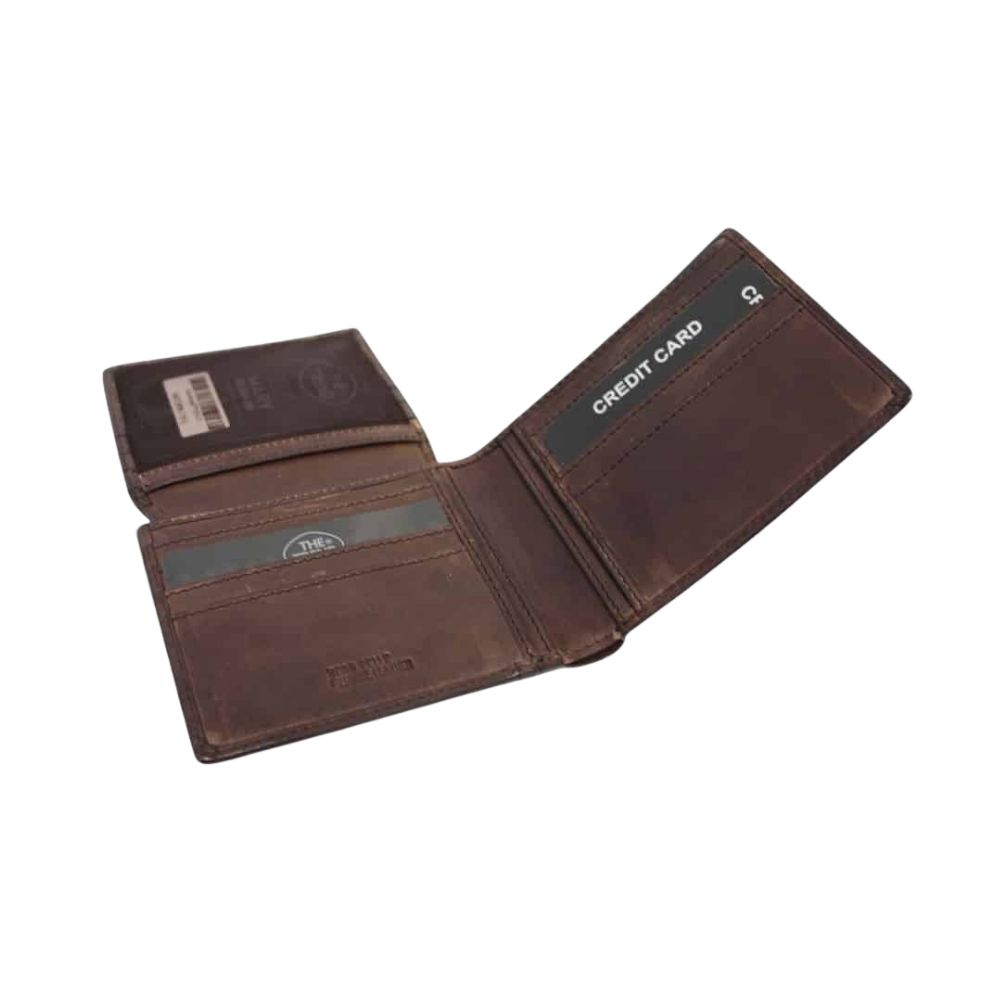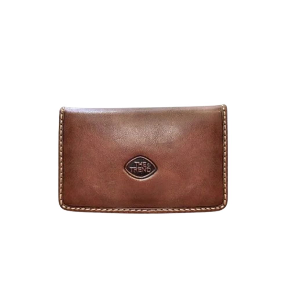 Portefeuille en cuir italien de marque The Trend. Le portefeuille contient plusieurs sections pour les cartes, dont un volet à gauche permettant davantage de sections pour ces dernières. Le verso du volet dispose d’une fenêtre pour carte d’identité. Finalement, le portefeuille dispose d’une double section pour le rangement de l’argent papier.