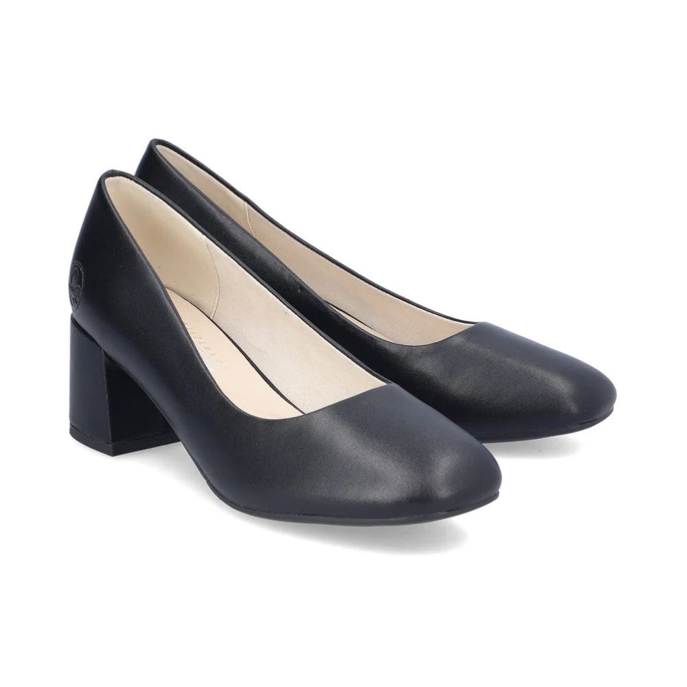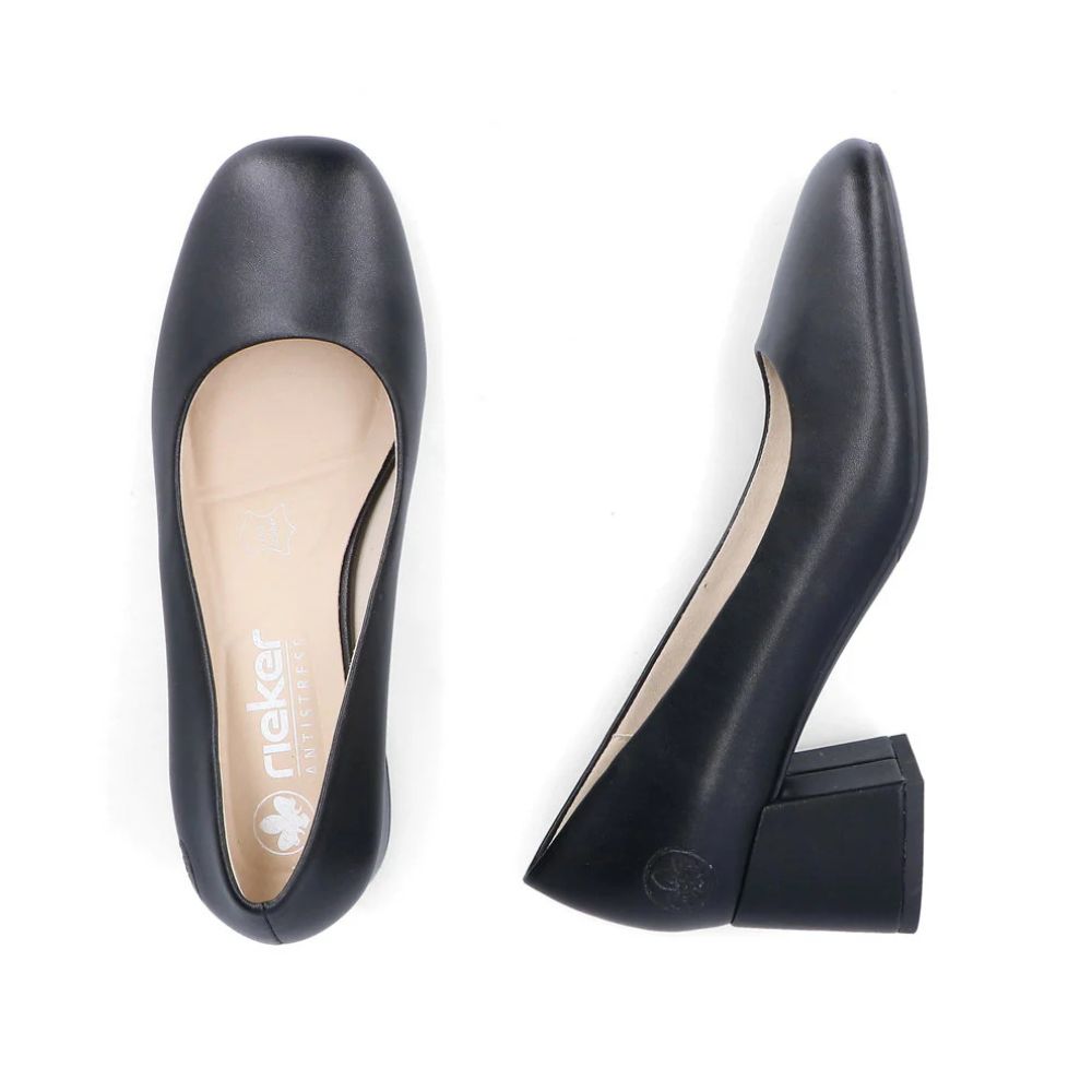 Chaussure tout-en-un ! Ces escarpins Rieker noirs en cuir lisse impressionnent par leur design moderne et leur confort exceptionnel. Ils s'enfilent simplement sans attache. Leur semelle adhérente à talon bloc offre une excellente adhérence à chaque pas. Que demander de plus ?