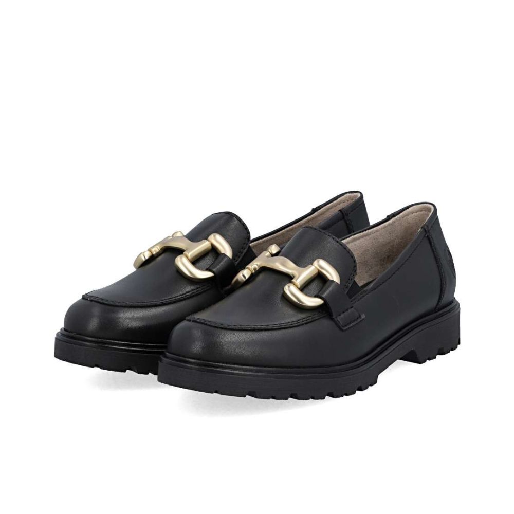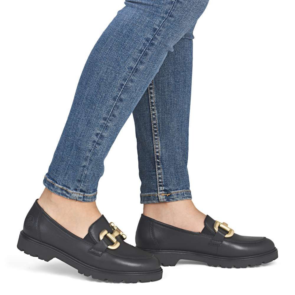 Un incontournable tendance ! Ces mocassins Rieker en cuir allient design tendance, confort optimal et fonctionnalité. Leur bande élastique permet de les enfiler et de les retirer facilement et confortablement. La chaîne décorative attire tous les regards. La semelle légère et adhérente assure une bonne adhérence sur tous les types de terrains. De plus, la semelle de recouvrement est extra souple. Le bien-être tendance signé Rieker !