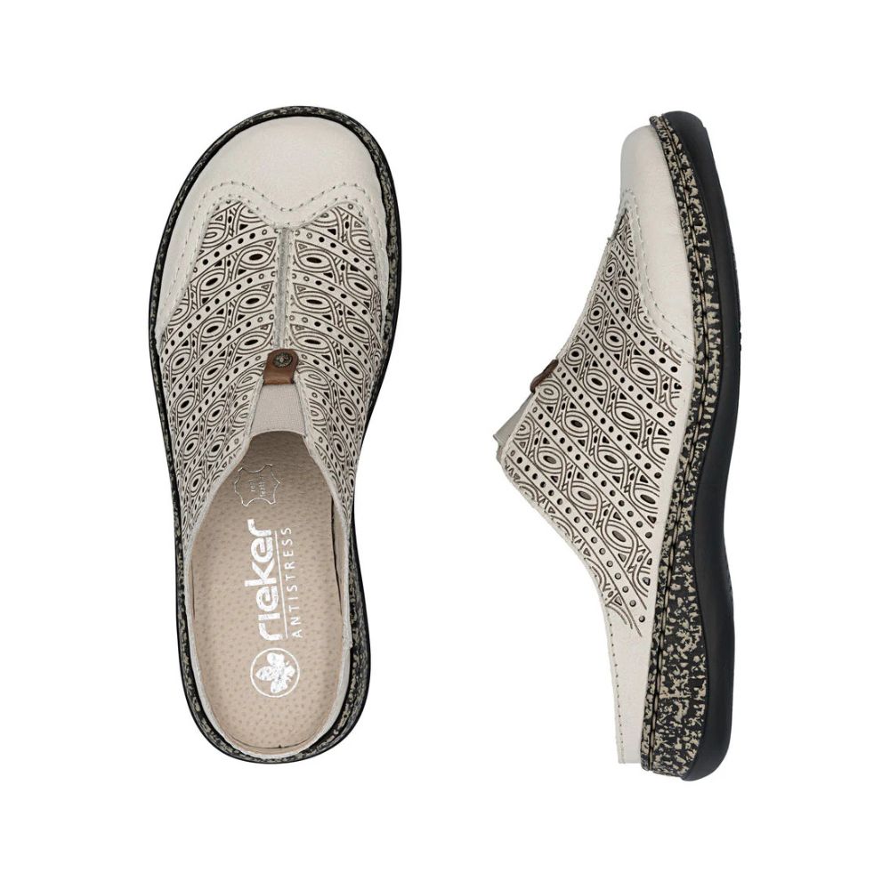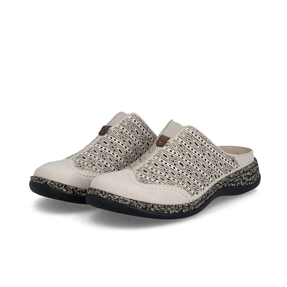 Un incontournable de la mode ! Ces sabots Rieker en cuir lisse allient style et confort à la perfection. Confectionnés selon la technique traditionnelle cousue-collée, ils offrent une robustesse et une souplesse exceptionnelles. L’élastique permet de les enfiler et de les retirer facilement et confortablement. Les élégantes perforations décoratives ajoutent une touche raffinée. La semelle légère et amortissante, dotée d’un talon compensé, assure un confort optimal à chaque pas. De plus, la semelle extérieure est d’une douceur incomparable. En résumé, l’alliance parfaite du style et du confort !