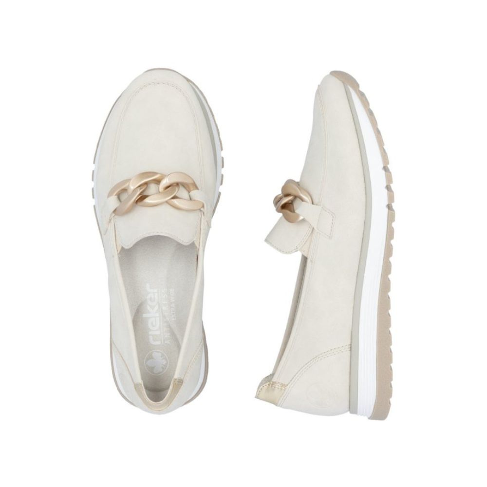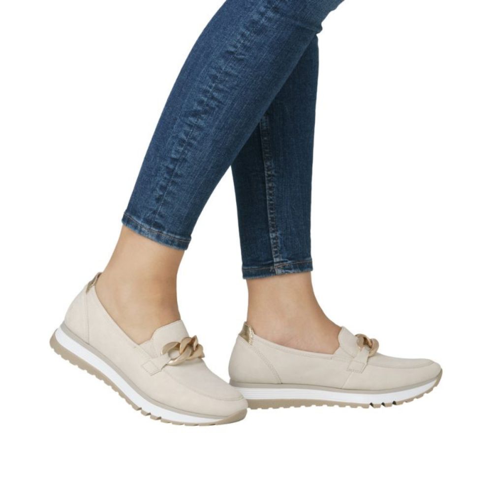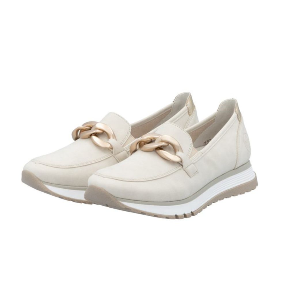 Style et confort : meilleurs amis pour toujours ! Ces mocassins Rieker en cuir offrent un confort optimal. Une bande élastique simplifie grandement l'enfilage et le déchaussage. La chaîne décorative rafraîchit le design. La semelle antidérapante assure un confort optimal à chaque pas. Grâce à la semelle intérieure rembourrée et amovible, le confort est optimal. De plus, la largeur supplémentaire offre une plus grande liberté de mouvement à l'avant-pied. Un pur luxe !