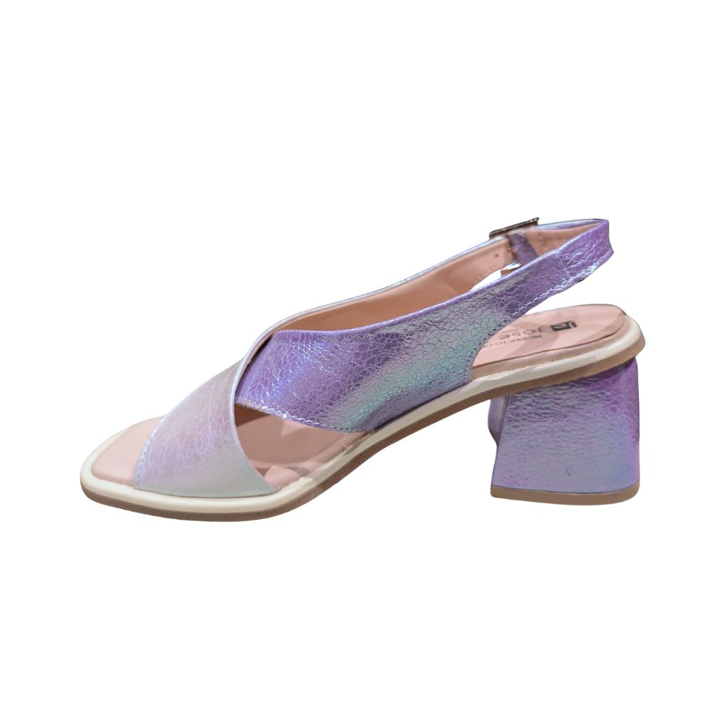 Sandales de la marque espagnole Jose SAENZ, de couleur rose, au style élégant et chic, sublimées par un ornement décoratif en métal au design sophistiqué.