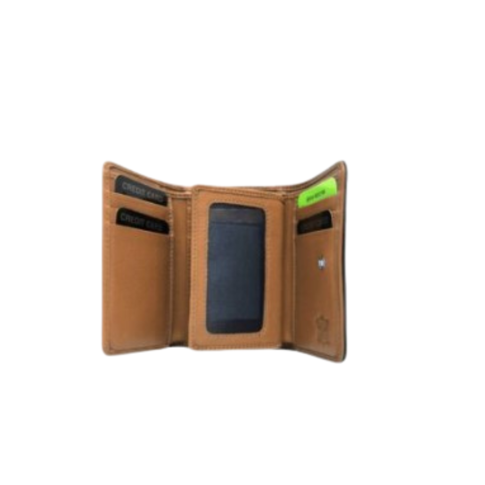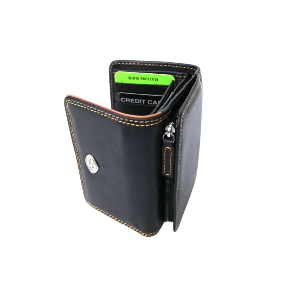 Portefeuille court en cuir italien de marque The Trend. Pochette pour la monnaie avec fermeture éclair, plusieurs compartiments pour les cartes et section pour mettre l’argent papier. Le produit est RFID (de l’anglais radio frequency identification), ce qui protège vos informations personnelles sur vos cartes de crédit.