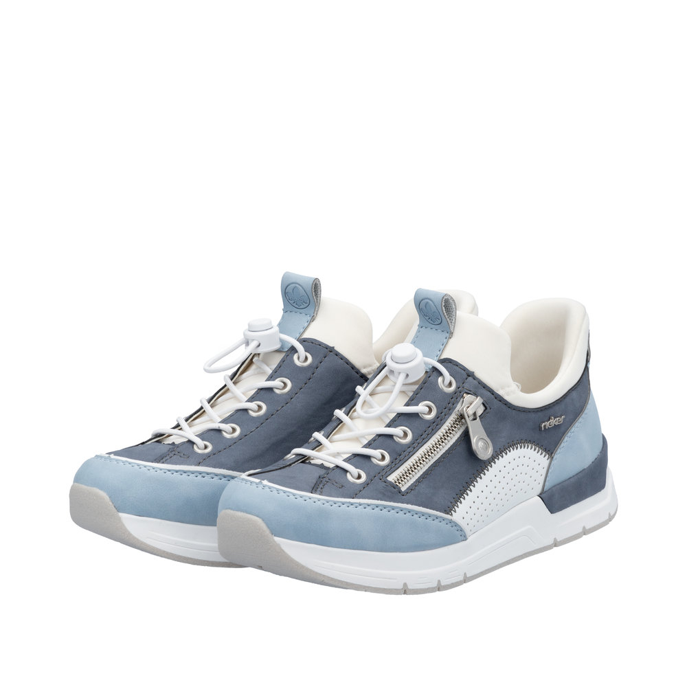 Ces pantoufles Rieker bleues sont la définition même de chaussures à enfiler pratiques ! Outre leur bande élastique, elles sont dotées d'un col élastique, ce qui les rend deux fois plus faciles à enfiler. La fermeture éclair décorative attire tous les regards. Grâce à leur semelle antidérapante à talon compensé, une marche sûre est un jeu d'enfant. La semelle intérieure rembourrée et amovible offre un confort optimal et une fonctionnalité raffinée. Faciles à enfiler et à retirer : grâce à la technologie Ready2GO, elles s'enfilent et se retirent en quelques secondes ! Enfilez-les et sentez-vous bien !