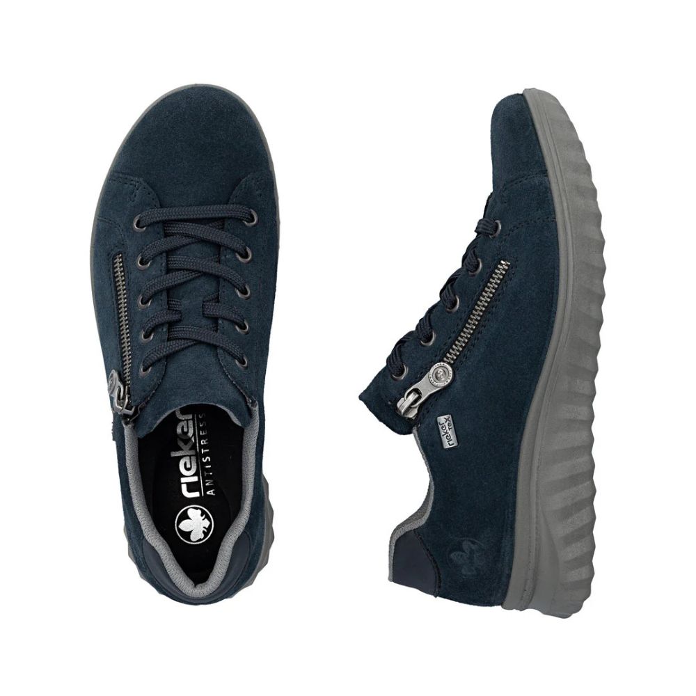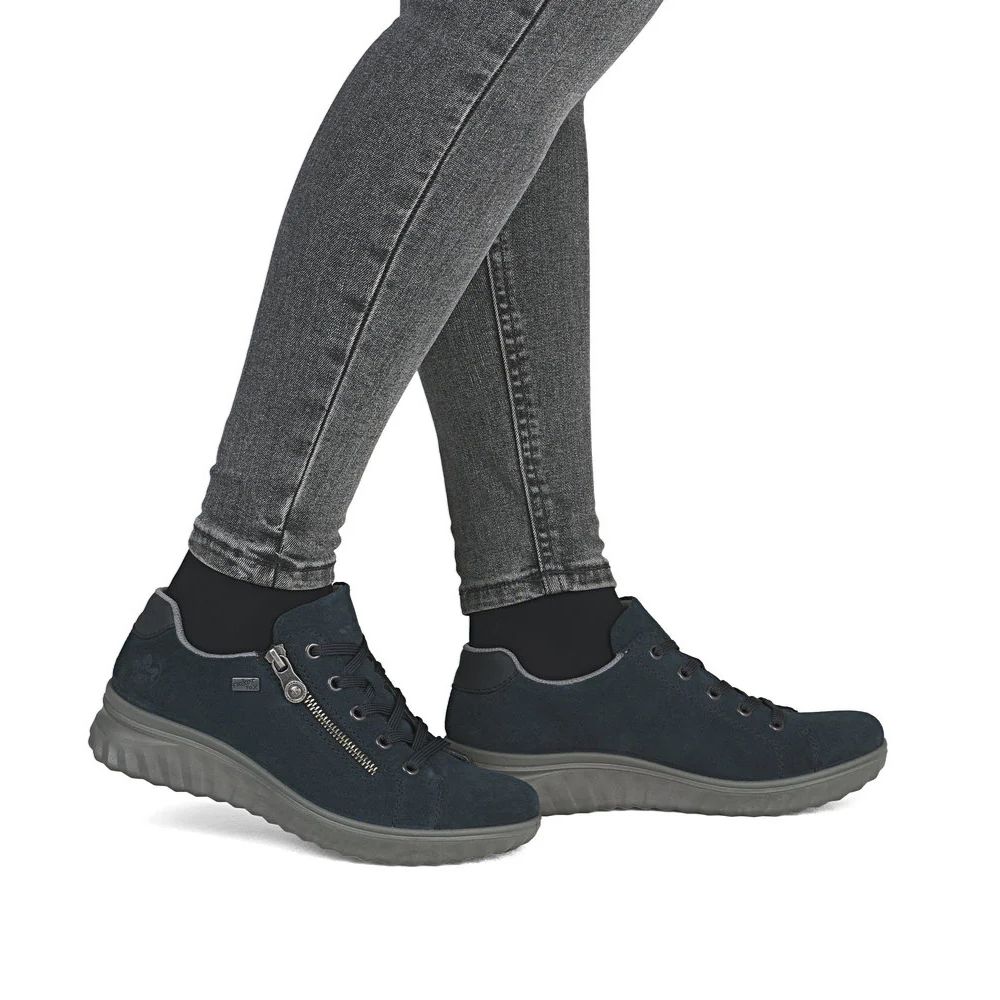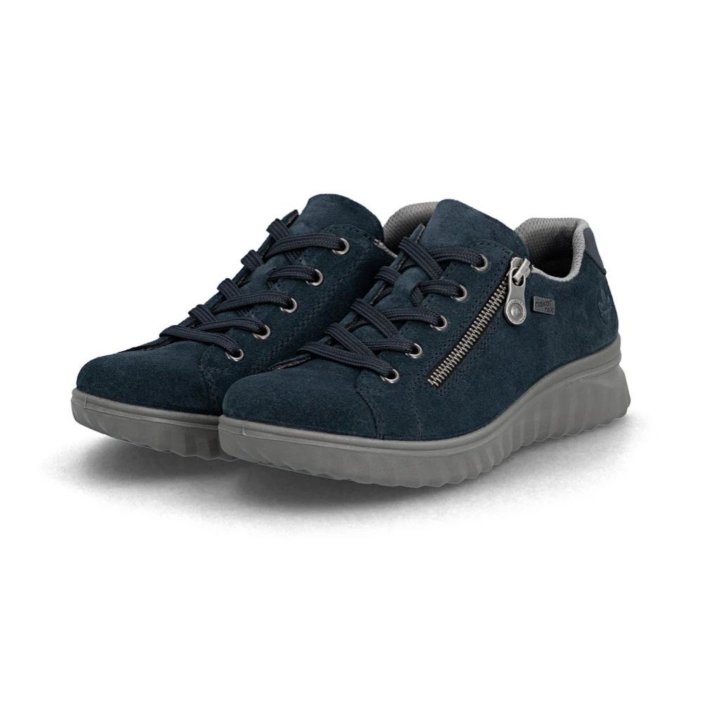 Restez classe ! Adoptez une allure décontractée et tendance avec ces chaussures à lacets Rieker bleu foncé en daim. L'association astucieuse du laçage et de la fermeture éclair garantit un ajustement parfait et un maintien optimal. Grâce à leur semelle légère et amortissante, vos pieds seront chouchoutés à chaque pas. Ces chaussures se distinguent également par leur semelle intérieure rembourrée et amovible. Elles sont équipées d'une membrane déperlante pour garder les pieds au sec par temps venteux. Tout simplement top !