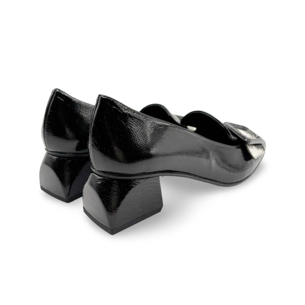 Affirmez votre style avec les mocassins à talon zèbre noir 5982, confectionnés en cuir verni noir élégant pour une finition impeccable. Ce mocassin allie un design classique à un talon discret, offrant style et confort. Parfaits pour le milieu professionnel, ils sont d'une grande durabilité et d'une allure raffinée qui sublime toutes vos tenues.
