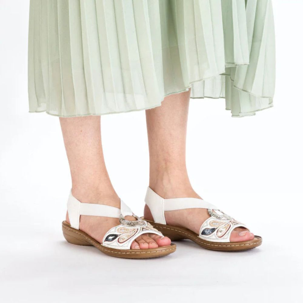Ça prend de l'air ! Optez pour un confort maximal et un style ultime avec ces sandales à brides Rieker. La construction cousue rend la chaussure robuste et la semelle particulièrement flexible, sans abîmer la tige. La bande élastique facilite l'enfilage et le retrait. Grâce à la semelle légère et amortissante à talon compensé, vos pieds profiteront d'un confort optimal à chaque pas. La coupe slim E 1/2 épouse parfaitement la forme de la chaussure. Un pur luxe !