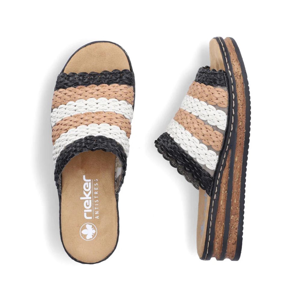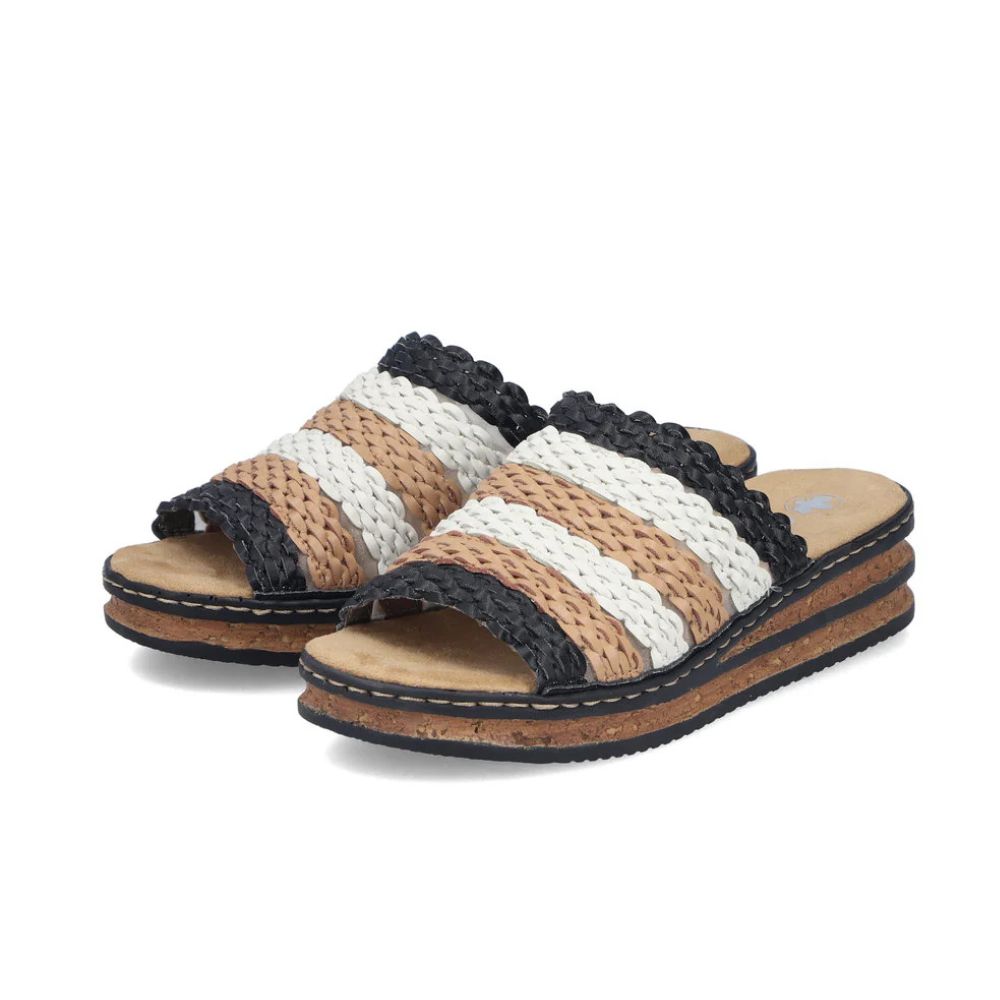 L'été à chaque pas ! Ces mules Rieker multicolores allient le style Rieker à une élégance pratique. Leur construction cousue traditionnelle leur confère une souplesse et une robustesse exceptionnelles, tout en assurant un excellent maintien. Sans fermeture, elles s'enfilent en un clin d'œil. Les détails tressés tendance parachèvent avec élégance leur design moderne. La semelle plateforme légère et amortissante amortit chaque pas. De plus, la semelle extérieure est ultra-douce. Grâce à leur coupe étroite, elles offrent un confort optimal. En route !