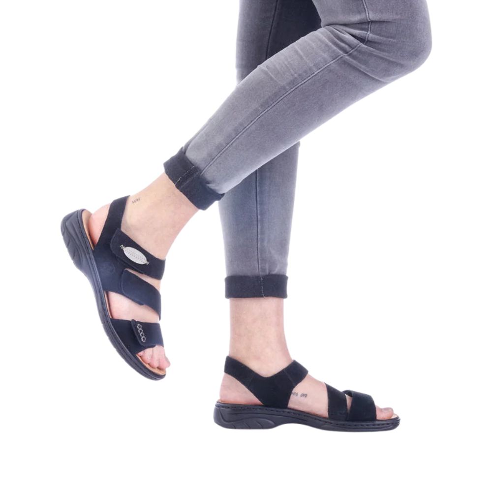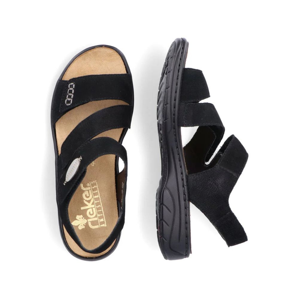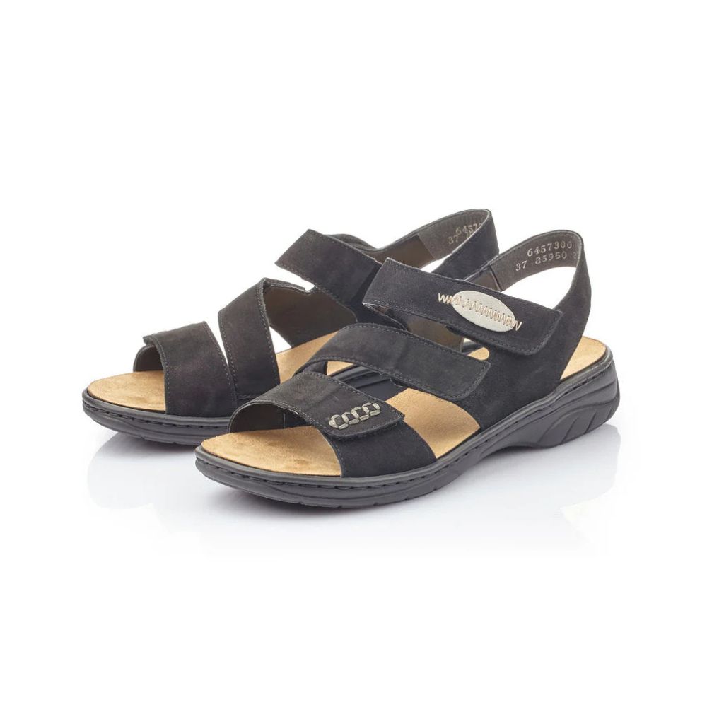 Confort et style se marient parfaitement. Ces sandales à brides Rieker en daim noir vous plongeront dans une ambiance de vacances assurée. Leur construction cousue en fait un compagnon particulièrement résistant et flexible. Elles s'enfilent en un clin d'œil grâce à une triple fermeture auto-agrippante. La semelle légère et amortissante à talon compensé, associée à la semelle intérieure amovible, assure un confort optimal. Grâce à leur chaussant E 1/2 étroit, elles sont confortablement ajustées sans comprimer. Attention, chaussures favorites !