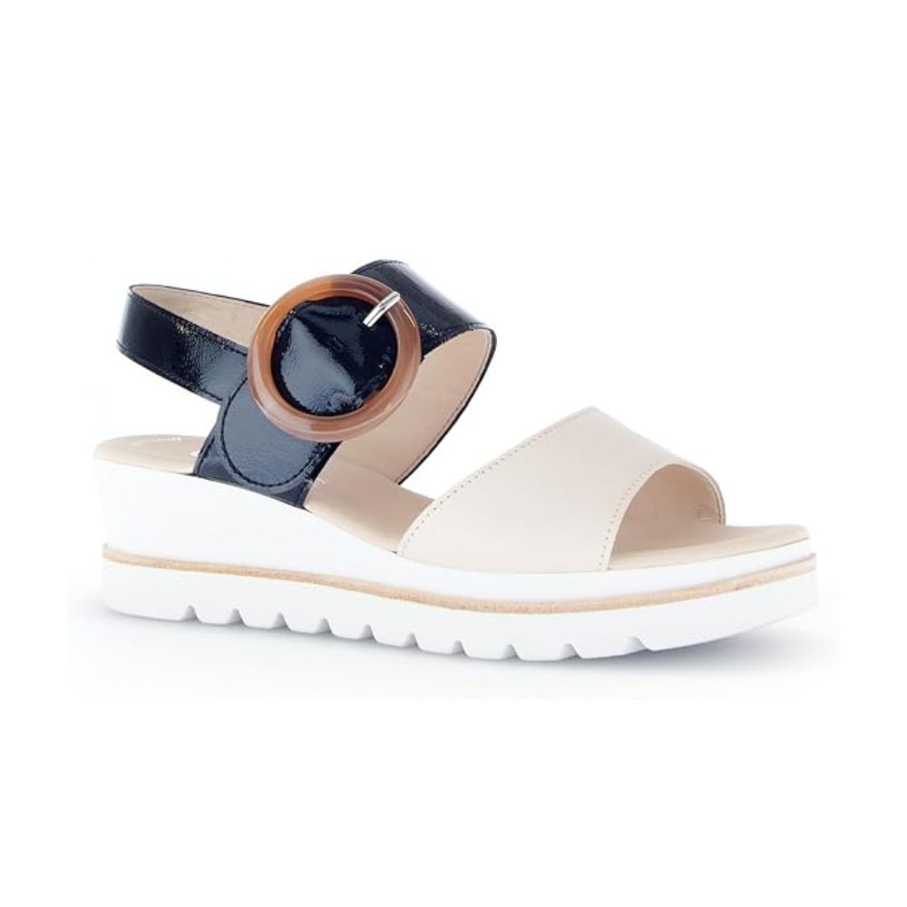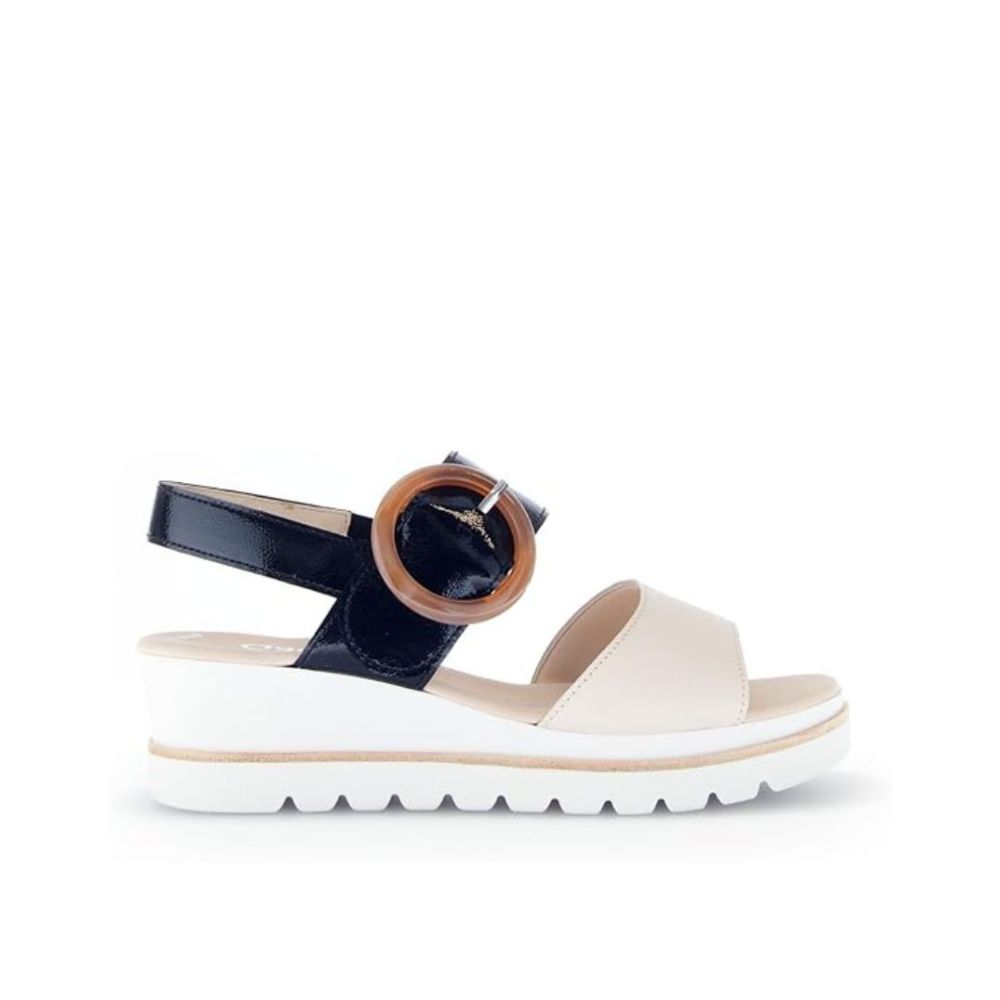 Le talon compensé Gabor offre une allure sophistiquée et un confort optimal pour gagner quelques centimètres. Une fermeture à scratch dissimulée sous une boucle sur le dessus de la sandale assure un maintien parfait tout au long de la journée !