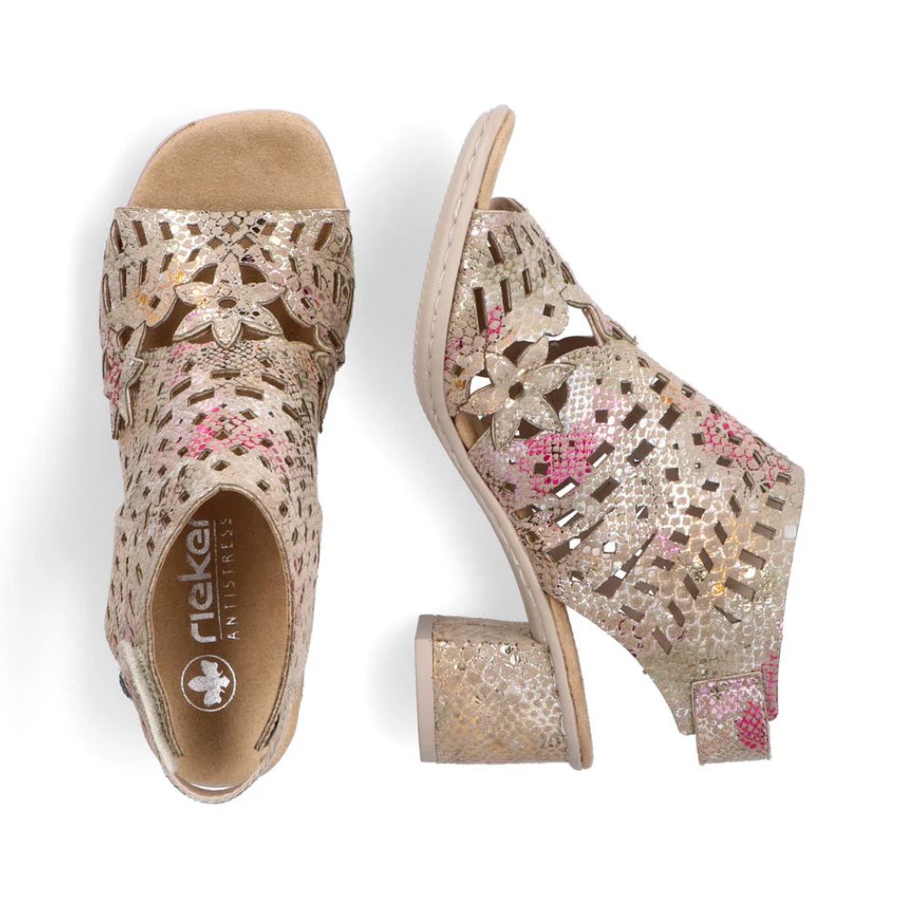 Bien plus qu'une simple chaussure ! L'été sera encore plus beau avec ces sandales Rieker multicolores ! Grâce à leur construction cousue, elles sont particulièrement stables et offrent une semelle flexible qui épouse parfaitement la forme du pied. Une fermeture auto-agrippante permet de les enfiler rapidement et facilement. La finition métallisée apporte une touche d'élégance. La semelle légère et amortissante avec talon bloc offre un confort durable, même lors des longues journées. Tout simplement parfaites !