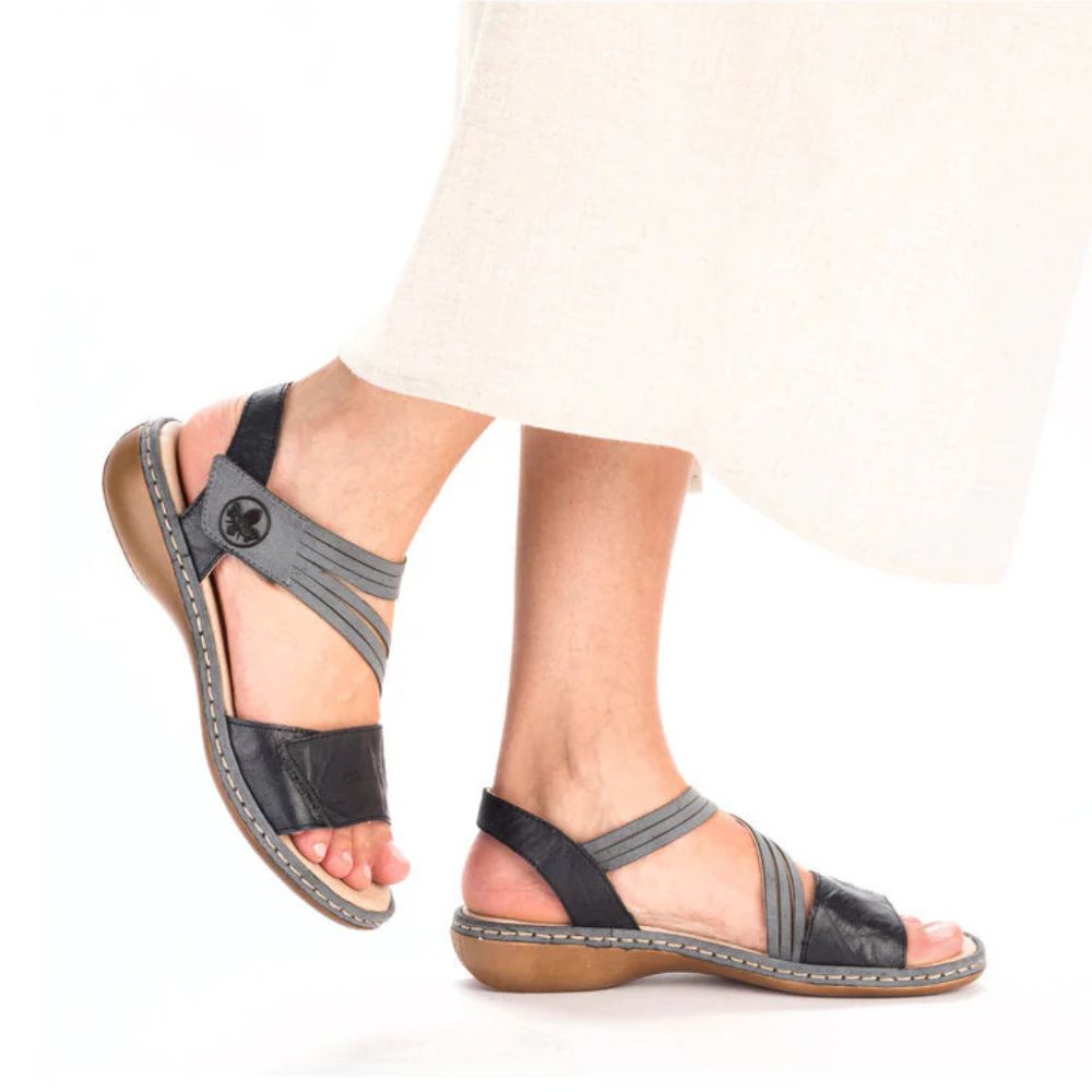 Style et confort : les deux à la fois ! Ces sandales à brides Rieker en cuir lisse vous plongeront instantanément dans l'ambiance estivale. Confectionnées selon la méthode traditionnelle cousue, elles sont robustes, souples et offrent un excellent maintien. La double fermeture auto-agrippante permet de les enfiler rapidement et assure un maintien parfait. La semelle légère et amortissante avec talon compensé offre un confort optimal à chaque pas. Grâce à leur coupe étroite, elles épousent parfaitement la forme du pied. L'accessoire idéal pour la nouvelle saison !