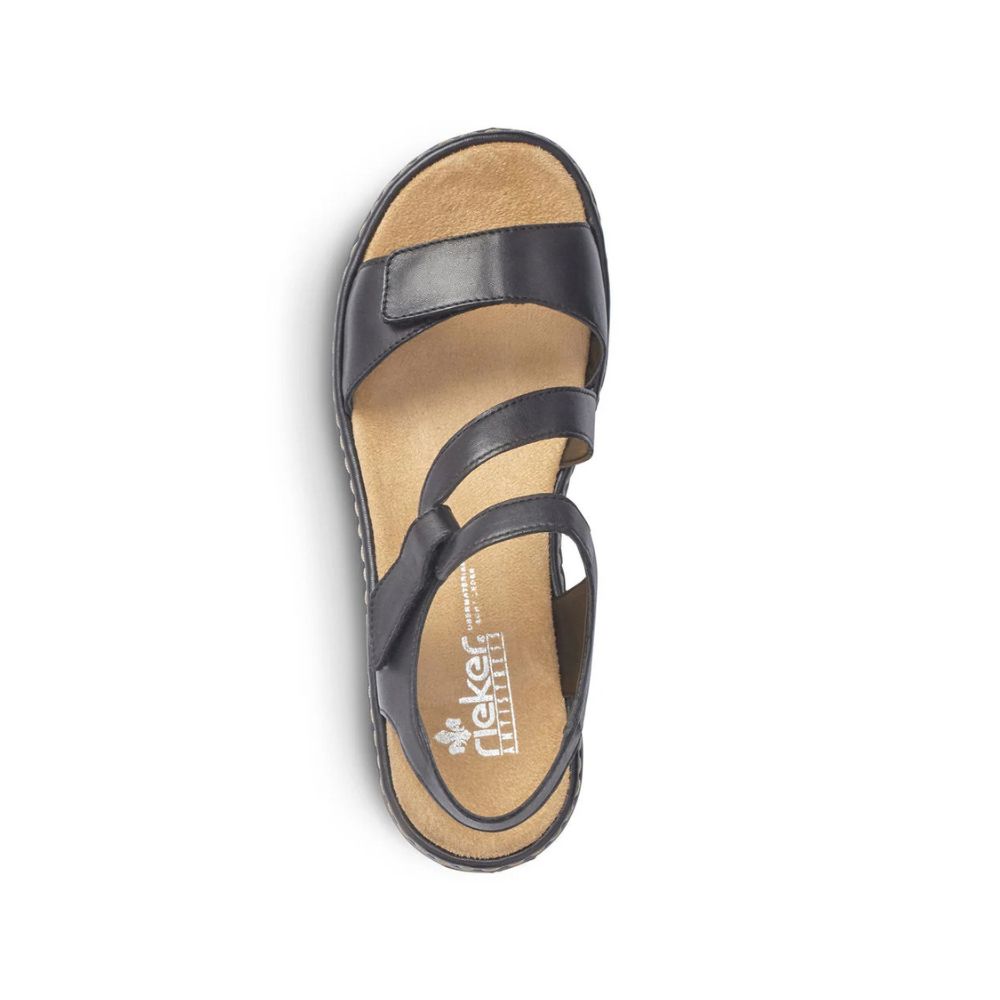 À la poursuite du soleil… ! Optez pour un confort optimal et un style ultime avec ces sandales Rieker à brides en cuir lisse. Fabriquées avec une construction cousue, elles sont robustes, flexibles et offrent un ajustement parfait. Elles s'enfilent en un clin d'œil grâce à une fermeture auto-agrippante. La semelle légère et amortissante avec talon compensé assure une marche agréable, même en cas de port prolongé. Leur chaussant étroit E 1/2 assure un ajustement parfait. Une sensation de bien-être tendance dans le style Rieker !