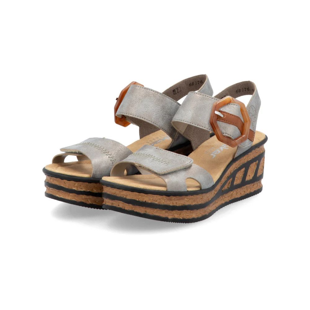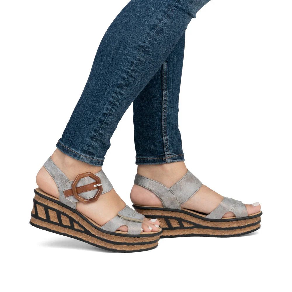 Toujours une longueur d'avance ! Avec ces sandales compensées Rieker, vous serez à la fois cool et décontractée. Leur construction cousue en fait une chaussure non seulement particulièrement robuste, mais aussi souple et confortable. Ce modèle s'enfile en un clin d'œil grâce à sa double fermeture auto-agrippante. La boucle tendance rafraîchit le design. Grâce à la semelle légère et amortissante à talon compensé, vos pieds seront chouchoutés à chaque pas. Impossible de faire plus !