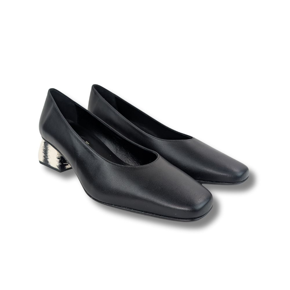 Chaussure Di Chenzo couleur noir, confectionnée en cuir de haute qualité. Son design sobre et raffiné met en valeur une ligne élégante et intemporelle. Dotée d’un talon original noir et blanc au style contemporain, elle allie élégance et confort au quotidien.