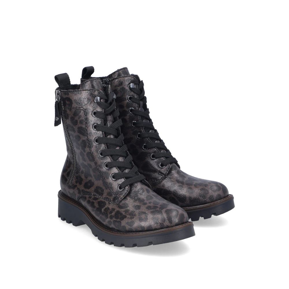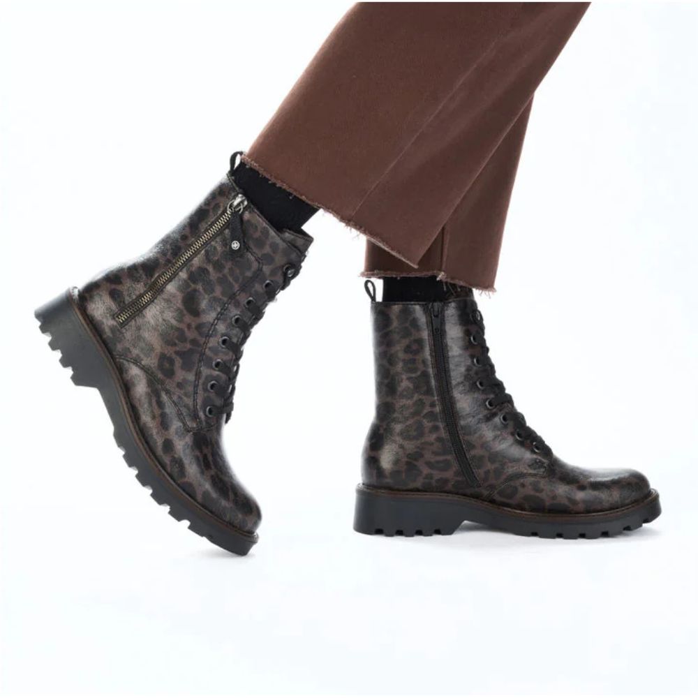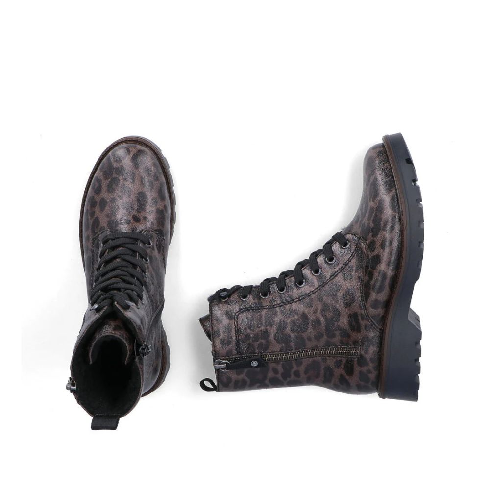 Le summum du confort ! Ces bottes motardes Rieker grises et véganes sont parfaites au quotidien. L'association astucieuse du laçage et de la fermeture éclair offre un maintien optimal et facilite l'enfilage et le retrait. L'imprimé léopard est un véritable accroche-regard. La semelle adhérente assure une bonne adhérence en toutes circonstances. Autre atout : sa semelle extra-douce. La doublure douce et chaude garde les pieds bien au chaud. Ici, le froid s'en va sans souci.