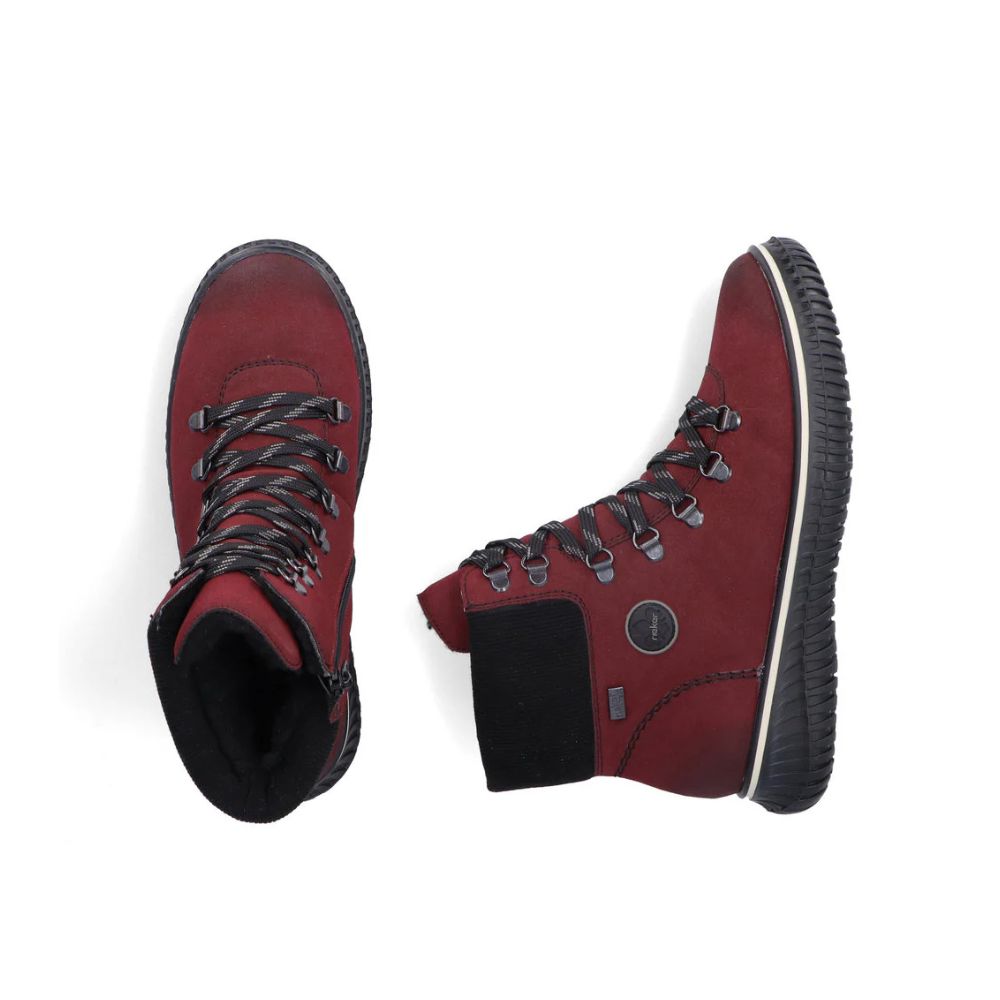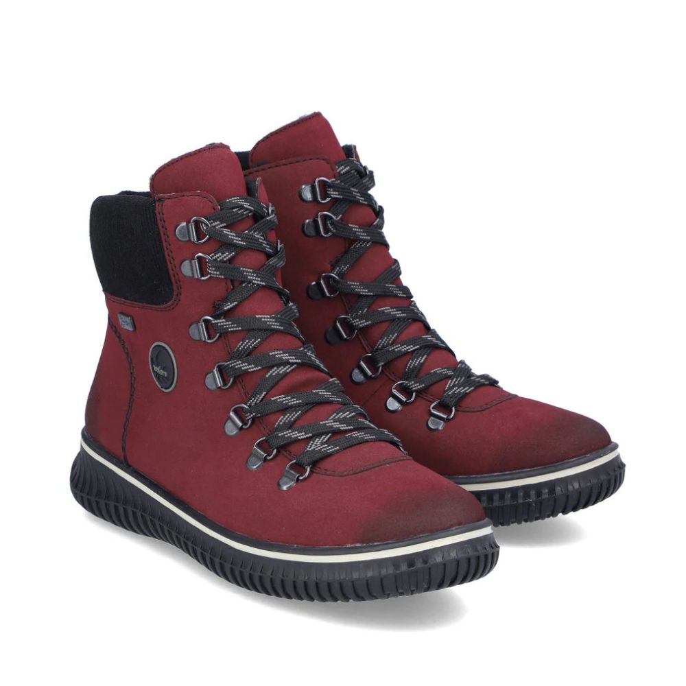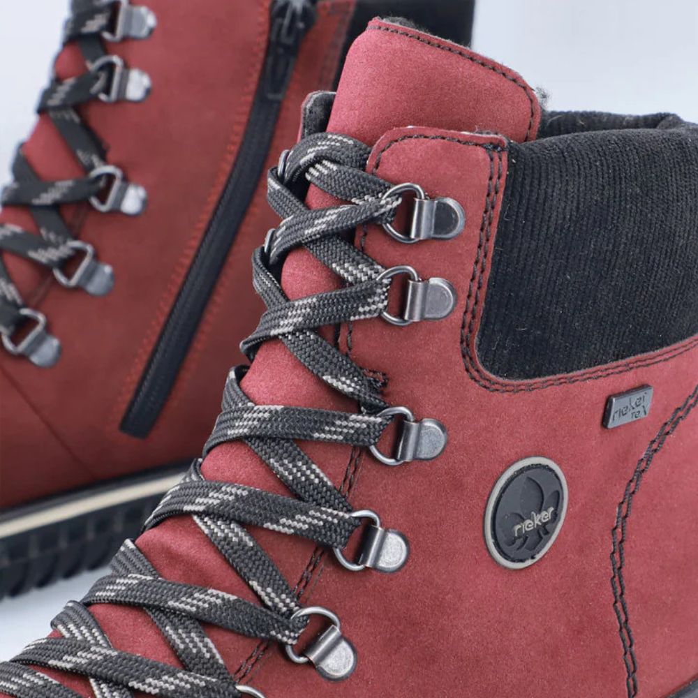 Élégantes et confortables pour l'hiver ! Ces bottines à lacets Rieker rouge foncé vous accompagneront avec style et décontraction. L'association astucieuse du laçage et de la fermeture éclair garantit un ajustement parfait et un maintien optimal. Leurs œillets accrocheurs attirent tous les regards. La semelle antidérapante assure une bonne adhérence. Grâce à leur semelle intérieure rembourrée et amovible, ces bottines offrent un confort optimal. Leur doublure chaude et douillette et la technologie RiekerTEX éprouvée font de ces bottines des alliées idéales, où et quand ! Elles sont idéales au quotidien !