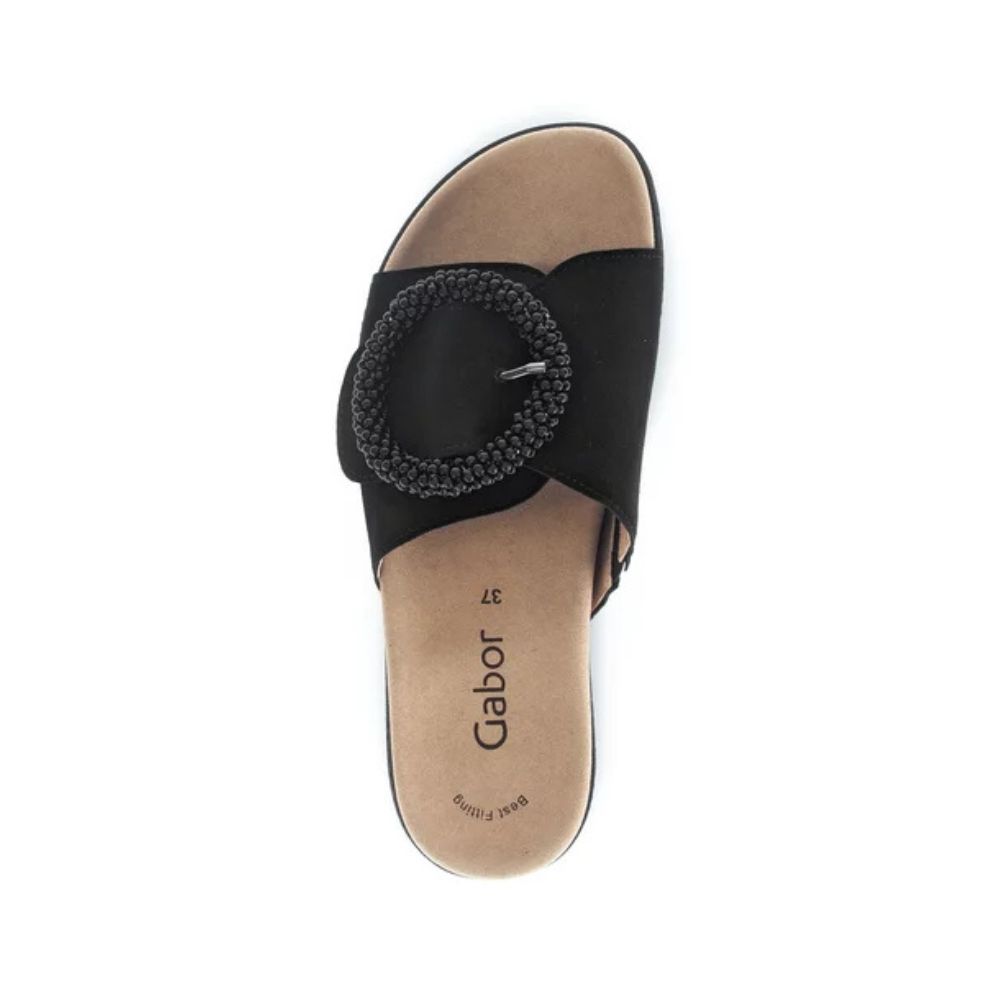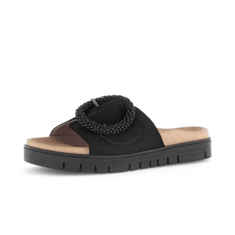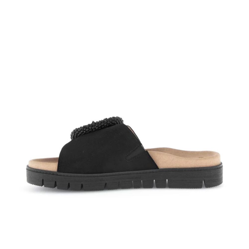Un compagnon de mode au quotidien, cette pantoufle stylée de Gabor est fabriquée en cuir de la plus haute qualité. Un superbe point de mire est la boucle décorative en perles sur le devant. Le confort élevé est assuré par la semelle anatomiquement formée.