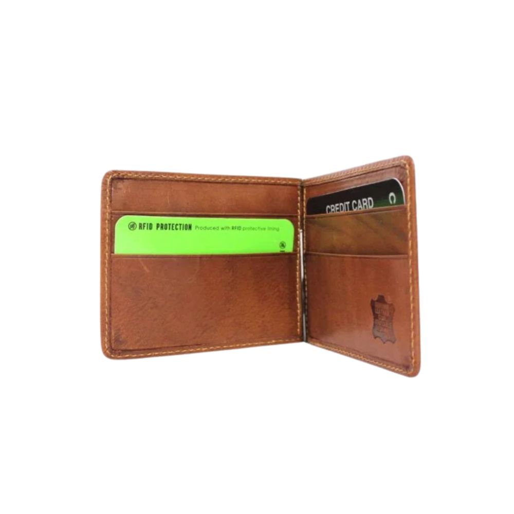Porte-billets en cuir italien de marque The Trend. Pince en métal amovible au milieu et plusieurs sections pour les cartes de chaque côté. Le produit est protégé RFID, ce qui protège vos informations personnelles sur vos cartes de crédit.