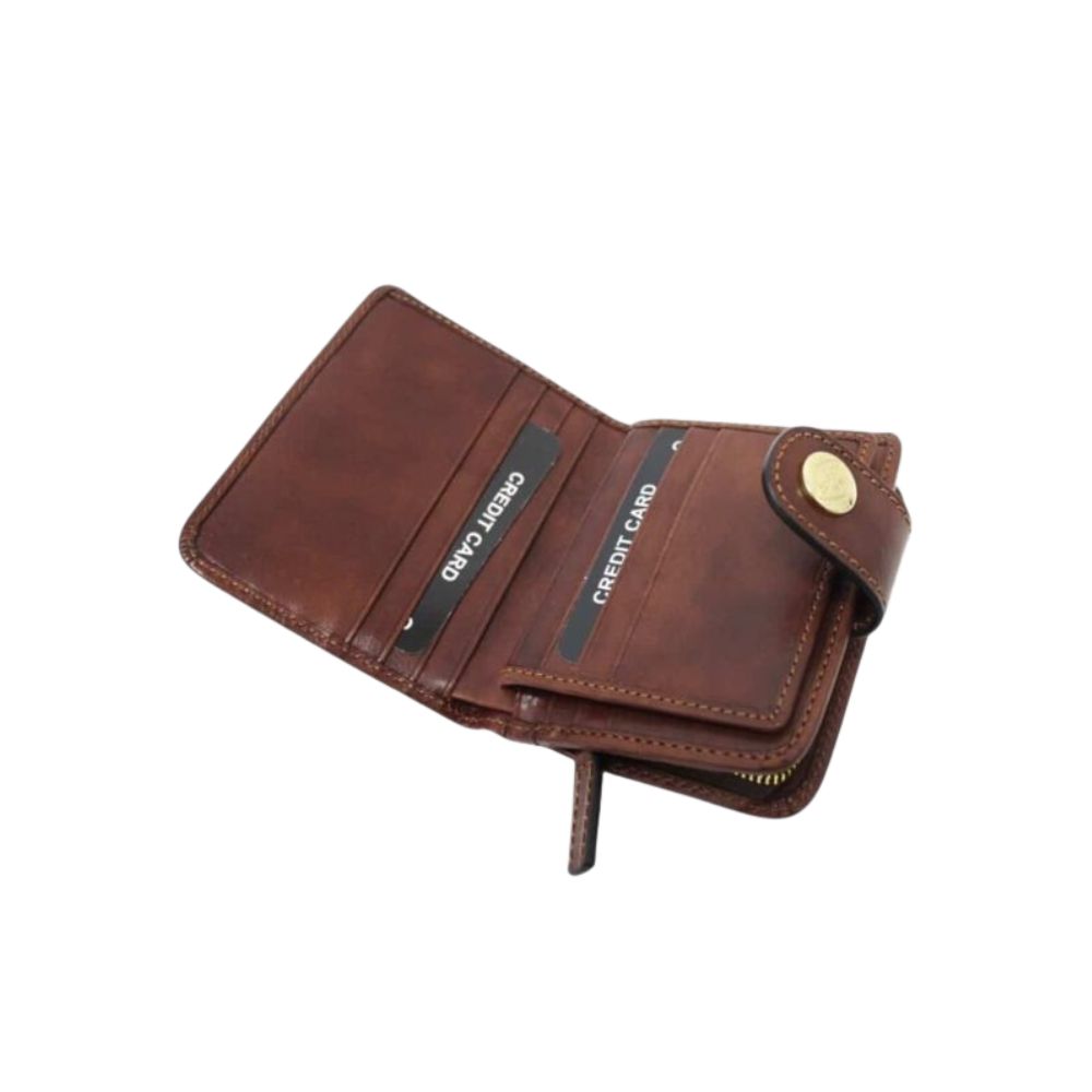 Portefeuille court en cuir italien de marque The Trend. Pochette double pour la monnaie avec fermeture éclair, plusieurs compartiments pour les cartes et section pour mettre l’argent papier. Le produit est protégé RFID, ce qui protège vos informations personnelles sur vos cartes de crédit.