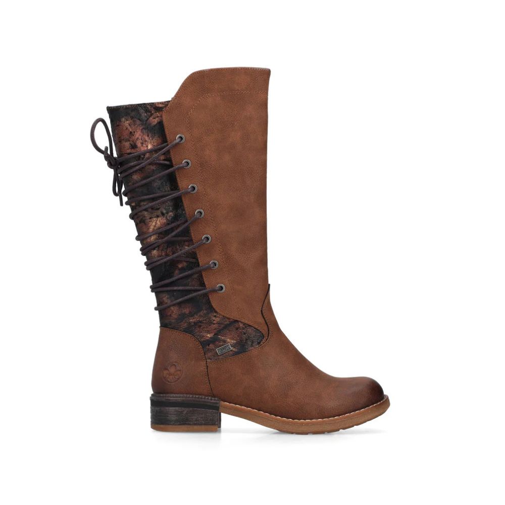 Confortables et élégantes, elles sont efficaces ! Vous ne voudrez plus quitter ces bottes hautes Rieker. L'association astucieuse du laçage et de la fermeture éclair offre un maintien optimal et facilite l'enfilage et le retrait. La semelle adhérente assure une bonne adhérence en toutes circonstances. La doublure chaude et moelleuse offre une protection durable contre le froid, tandis que la tige déperlante protège efficacement de l'humidité et du vent. Affrontez les journées froides avec style !