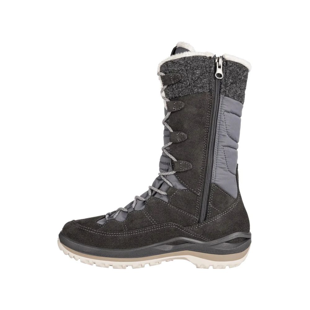 Voici la troisième génération de notre populaire botte d’hiver, la LOWA Alba III GTX Ws. Elle est non seulement dotée d’un design rafraîchissant mais aussi de nombreux détails fonctionnels. La Alba III GTX WS est fabriquée dans un matériau durable et dispose également d’une doublure Gore-Tex Partelana imperméable, respirante et extra chaude. Elle dispose également d’une fermeture éclair sur le côté pour permettre d’enfiler la botte plus facilement. Lorsque l’hiver montre son plus beau côté, la semelle LOWA AL-S IV est dans son élément. Elle excelle grâce à un profil de crampons conçu pour les ruses de l’hiver et à son composé de caoutchouc éprouvé. Conçue pour un pied féminin et construite sur une forme féminine pour un confort supplémentaire.