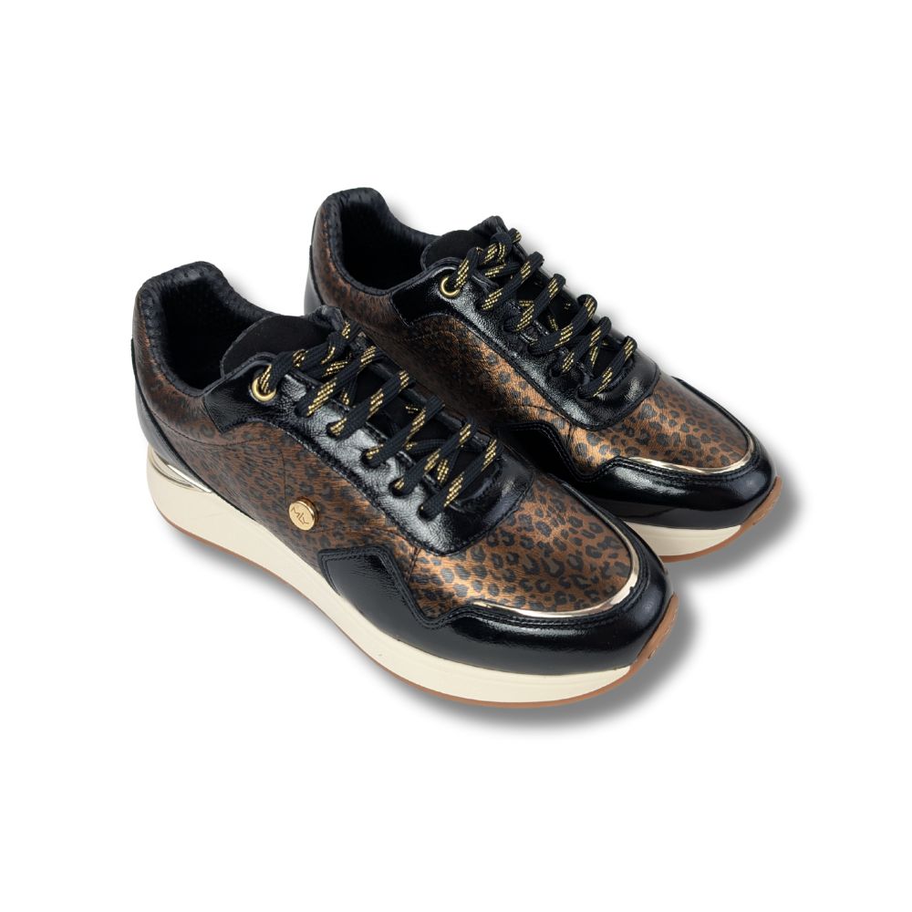 Sneakers Sole Mio, fabriquées au Portugal, alliant savoir-faire et qualité. Confectionnées en cuir vernis rehaussé d’un motif léopard tendance, elles apportent une touche audacieuse et raffinée à vos tenues. Les lacets brillants soulignent le caractère moderne du modèle. Des sneakers au style affirmé, idéales pour un look chic et contemporain.