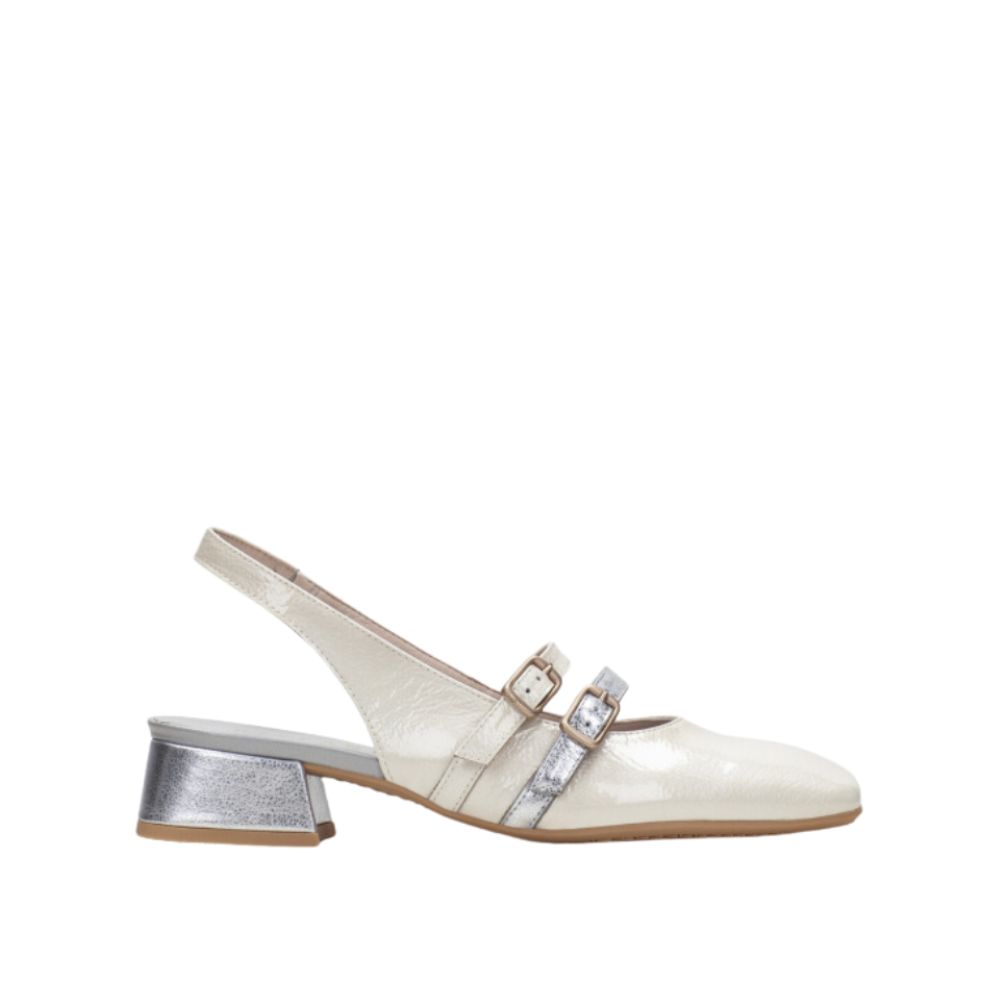 Chaussure à bride arrière en cuir à bout carré et talon de 3 cm. Ce modèle de style ballerine est doté de deux fines brides parallèles fermées par une boucle sur le cou-de-pied, pour un ajustement parfait. Cette chaussure intègre la technologie Triflow, un triple amorti qui procure un effet matelassé sur la semelle.