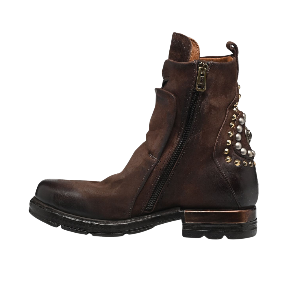 Ce bottillon très original avec son cuir de couleur brun et ses ornements stylés. Cette botte est un bijou à regarder ! Sa couleur, sa forme et son design unique donnent une touche « wow » à une tenue plus basique. Fait main en Italie !