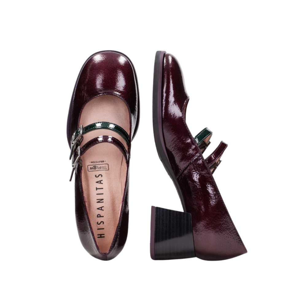 Mary Jane à bout rond, talon carré de 5 cm et bride à boucle. Cette chaussure intègre la technologie Triflow, qui amortit chaque pas et offre souplesse et confort grâce à son triple rembourrage.