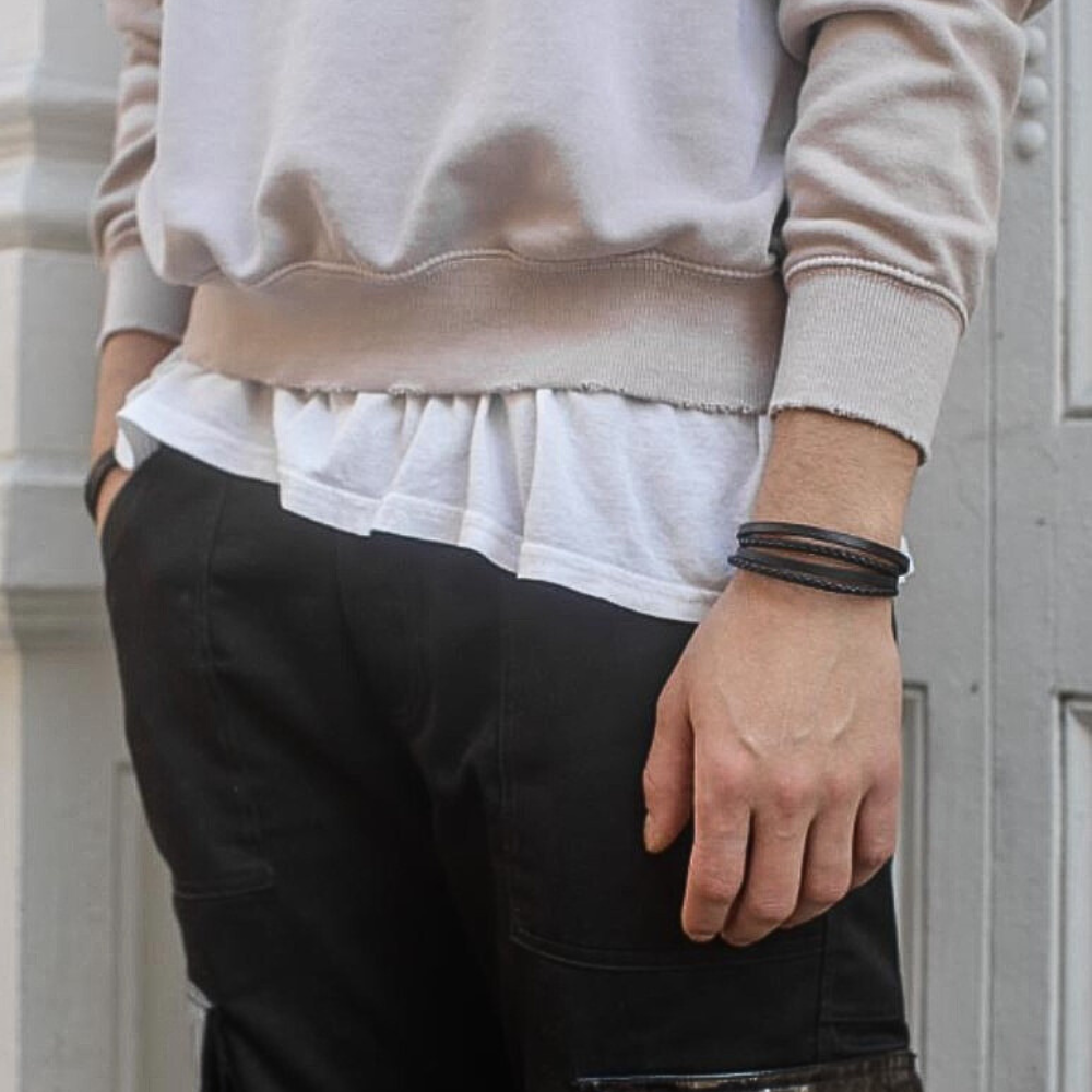 Arz | Black cuir clasp double strand