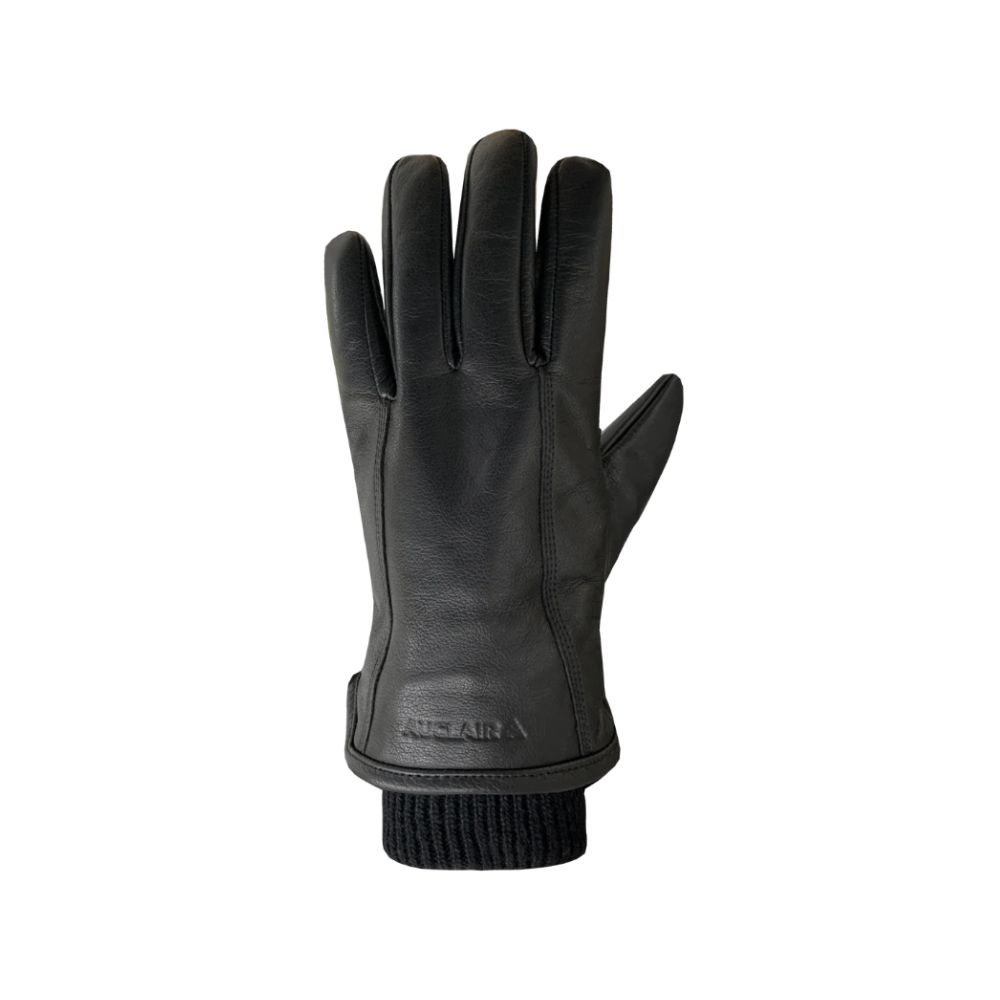 Gant court en cuir avec gant intérieur en tricot côtelé long