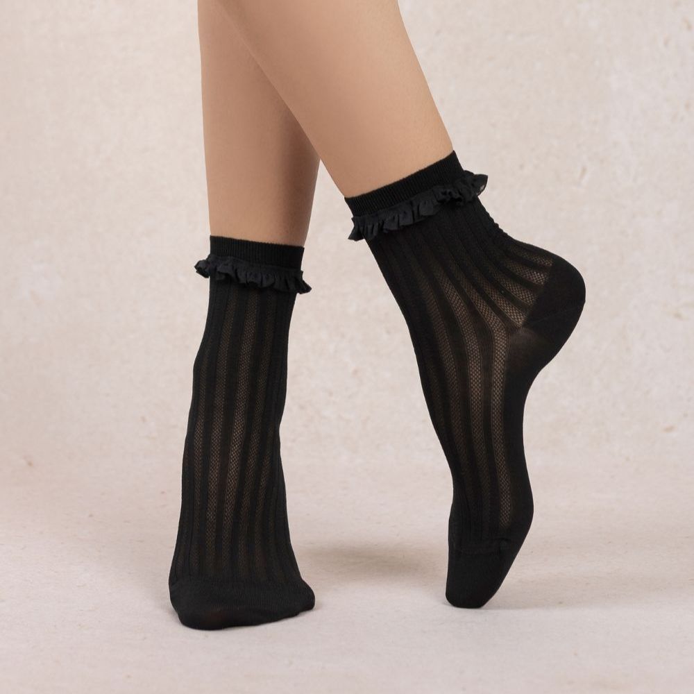 Alliant finesse et résistance, nos chaussettes femme en fil d’Écosse, à bord-côtes volantés, apportent une touche délicate et lumineuse au quotidien. Confortables et durables, elles sont fabriquées en France, dans notre usine des Vosges.