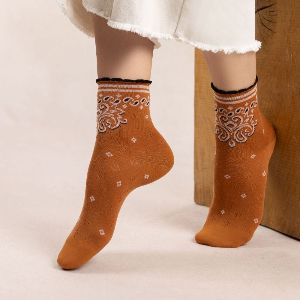 En pur coton doux et résistant, nos chaussettes au motif bandana habillent vos pieds d’un style affirmé, entre esprit western et vintage. Confortables et durables, elles sont fabriquées en France, dans notre usine des Vosges, et déclinées en trois coloris.