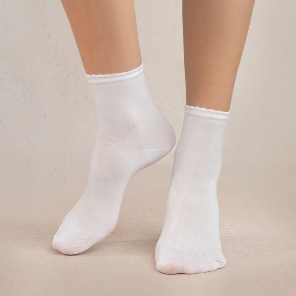 Matière incontournable de la mi-saison, le fil d’Écosse offre à ces chaussettes courtes douceur et légèreté.